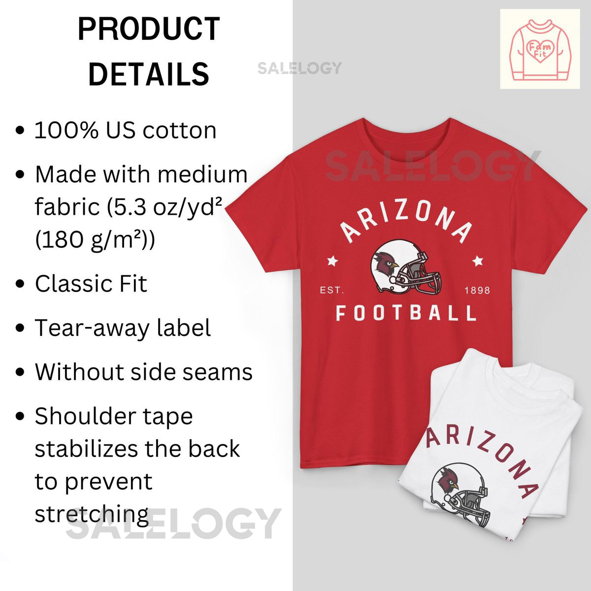 Arizona Football Jersey Shirt – Vintage Crewneck Sweatshirt Cardinal Gameday Tee Famfit17-10_72