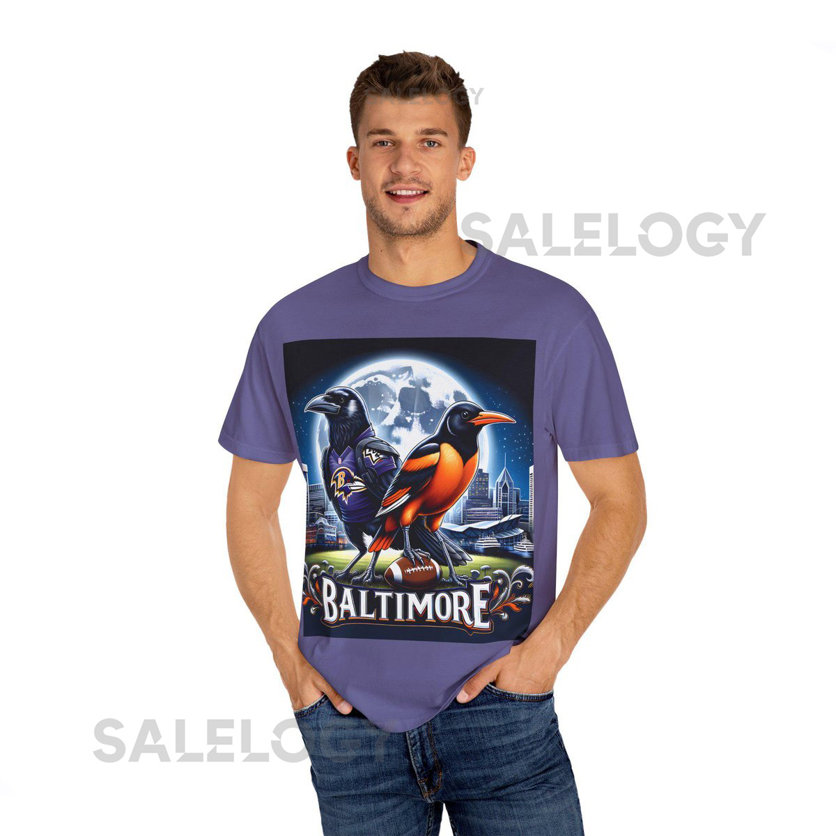 Baltimore Ravens Orioles T-shirt Baseball Football Fan Gift Baltimore Birds Tee Unisex Garment-Dyed Shirt Sports Apparel Team Spirit_111
