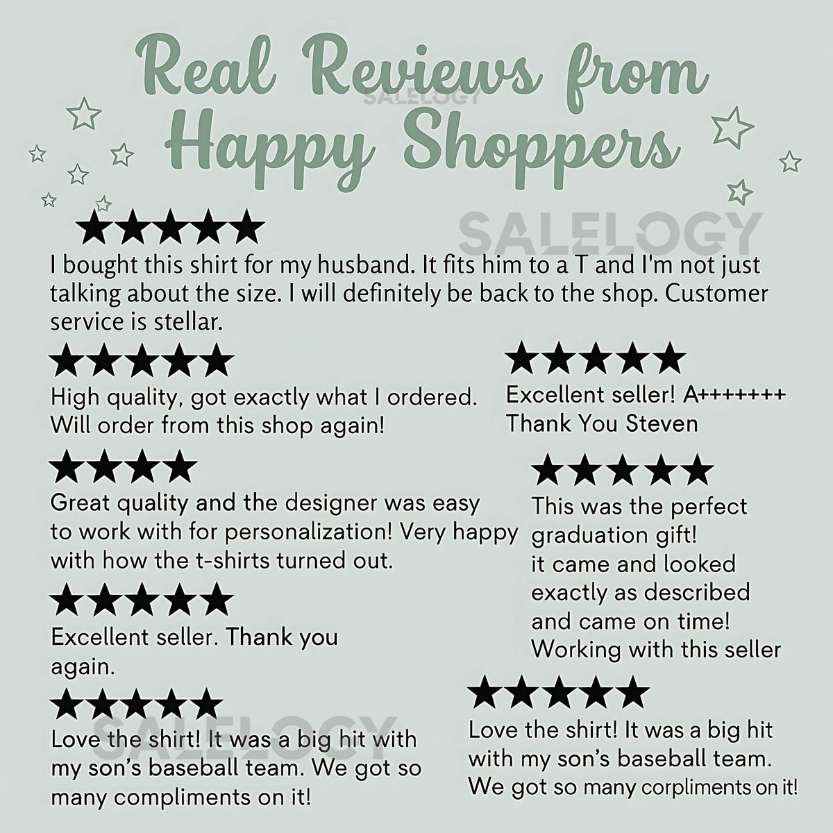Please contact us at support@salelogy.com if you have any other questions.