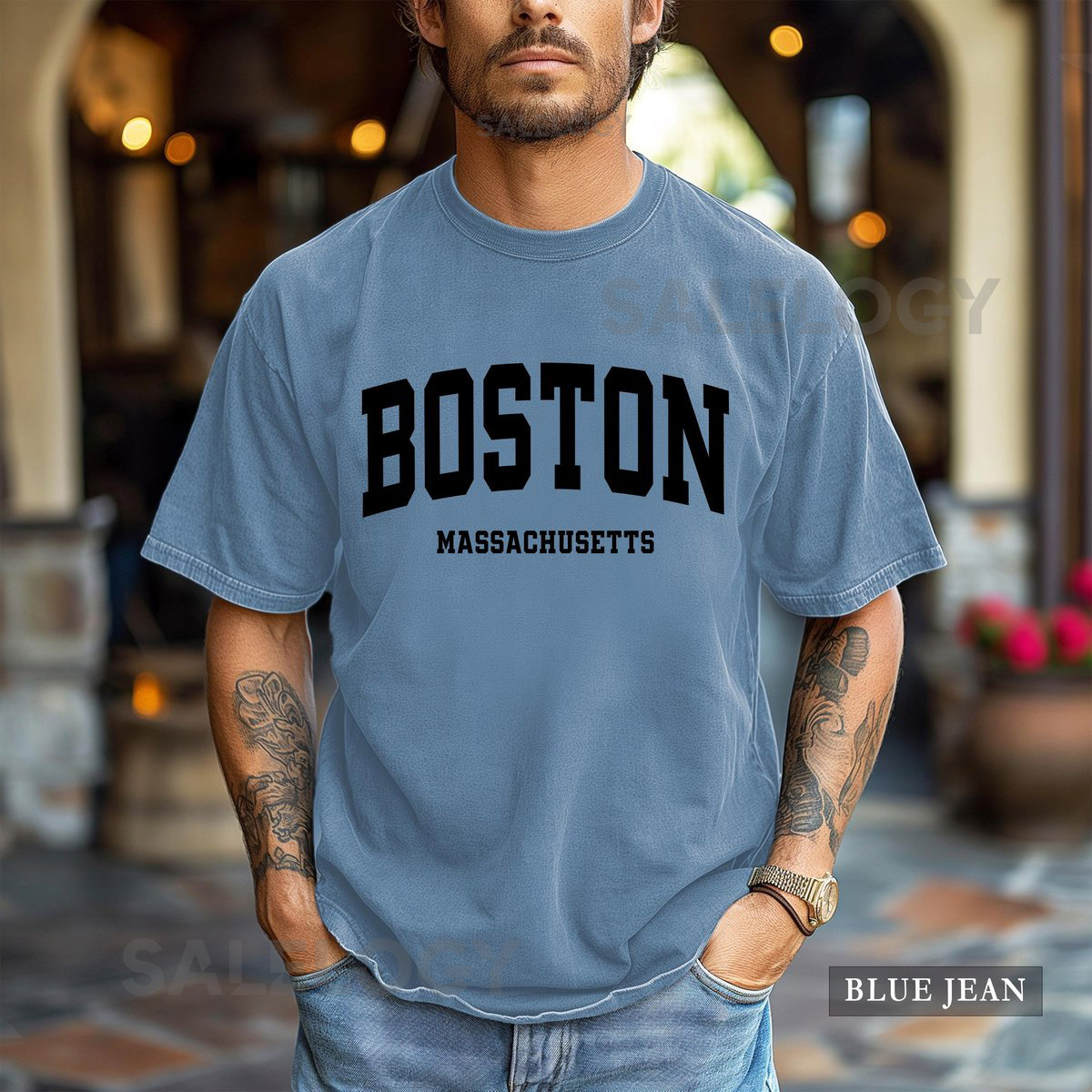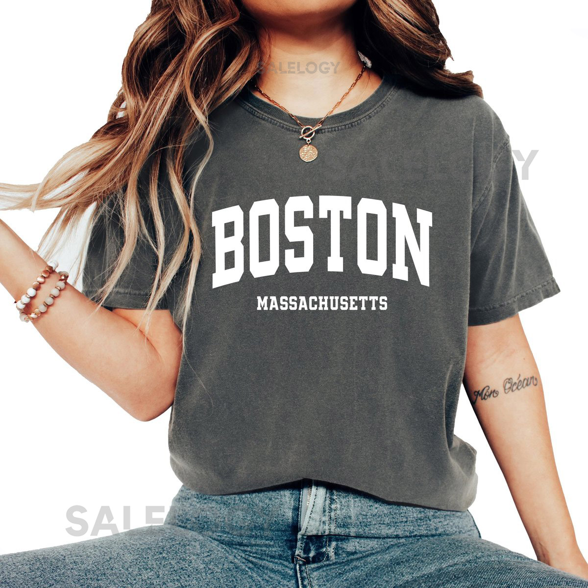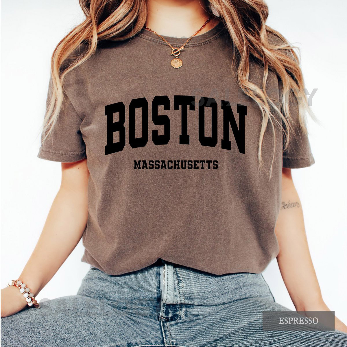 Boston Shirt Comfort Colors Varsity Font Massachusetts Graphic Tee_214