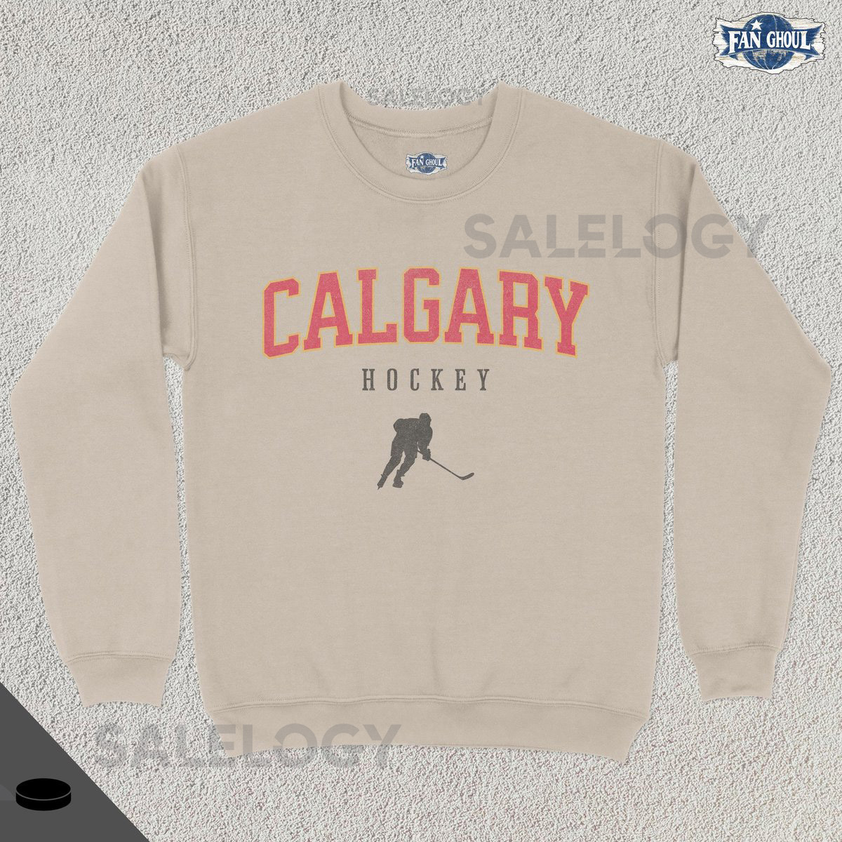 Calgary Hockey Varsity Sweatshirt College Sports Crewneck College Sweater Hockey Fan Gift Hockey Lover Apparel Vintage Retro Flame_29