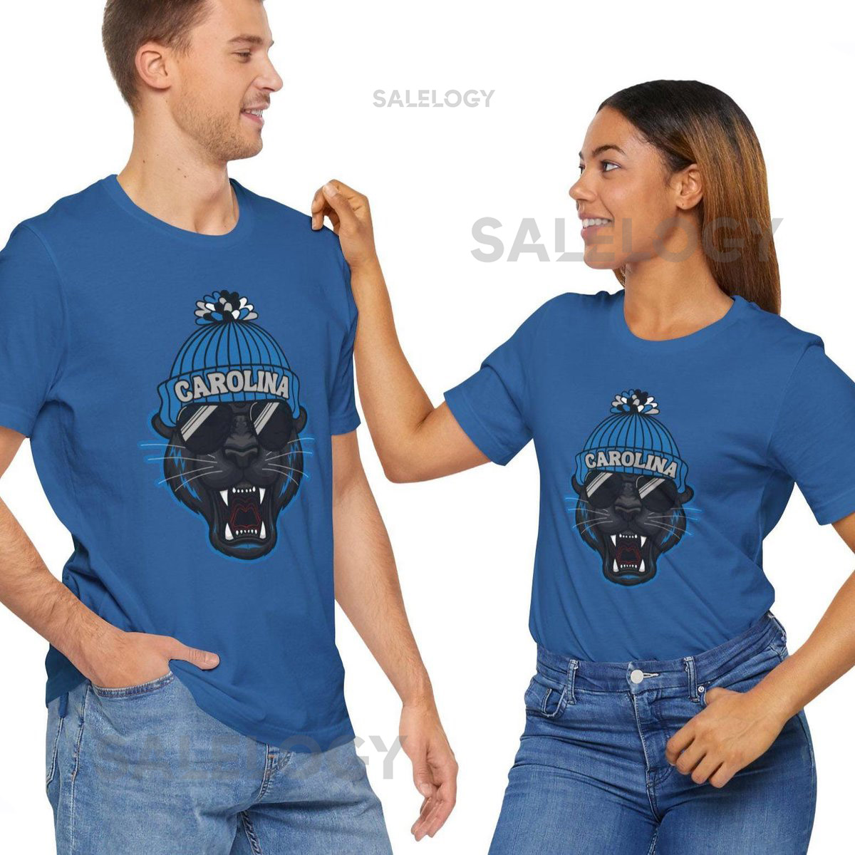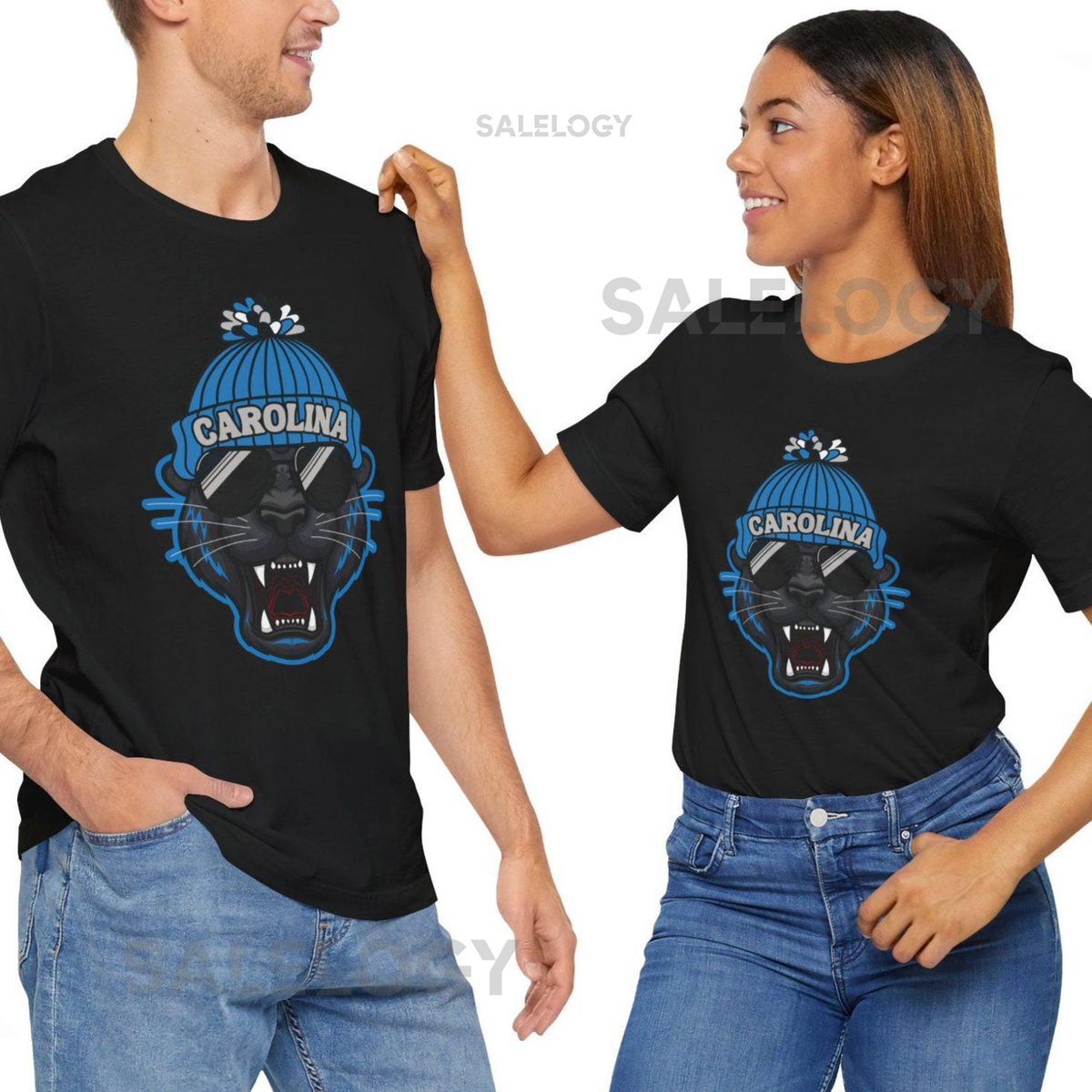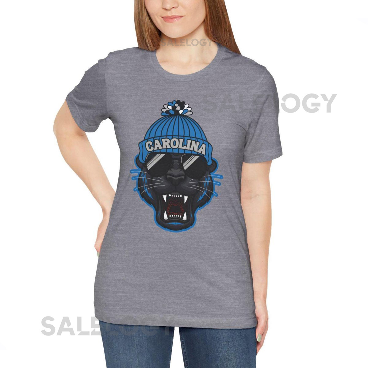 Carolina Football Fan Tee Trendy Panther With Beanie T-Shirt_324