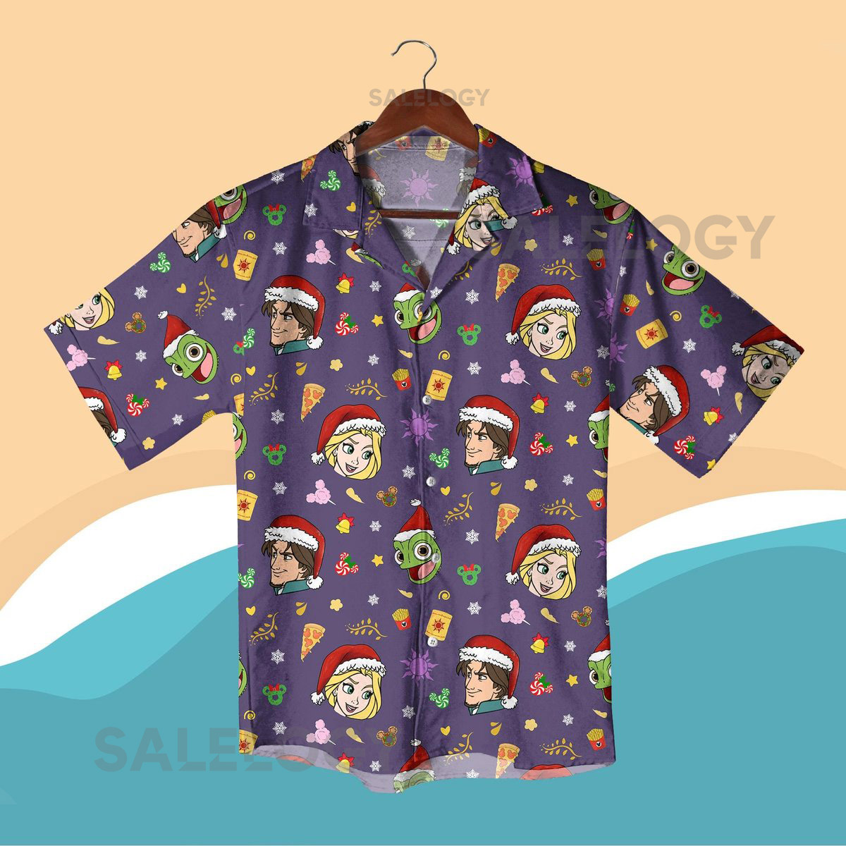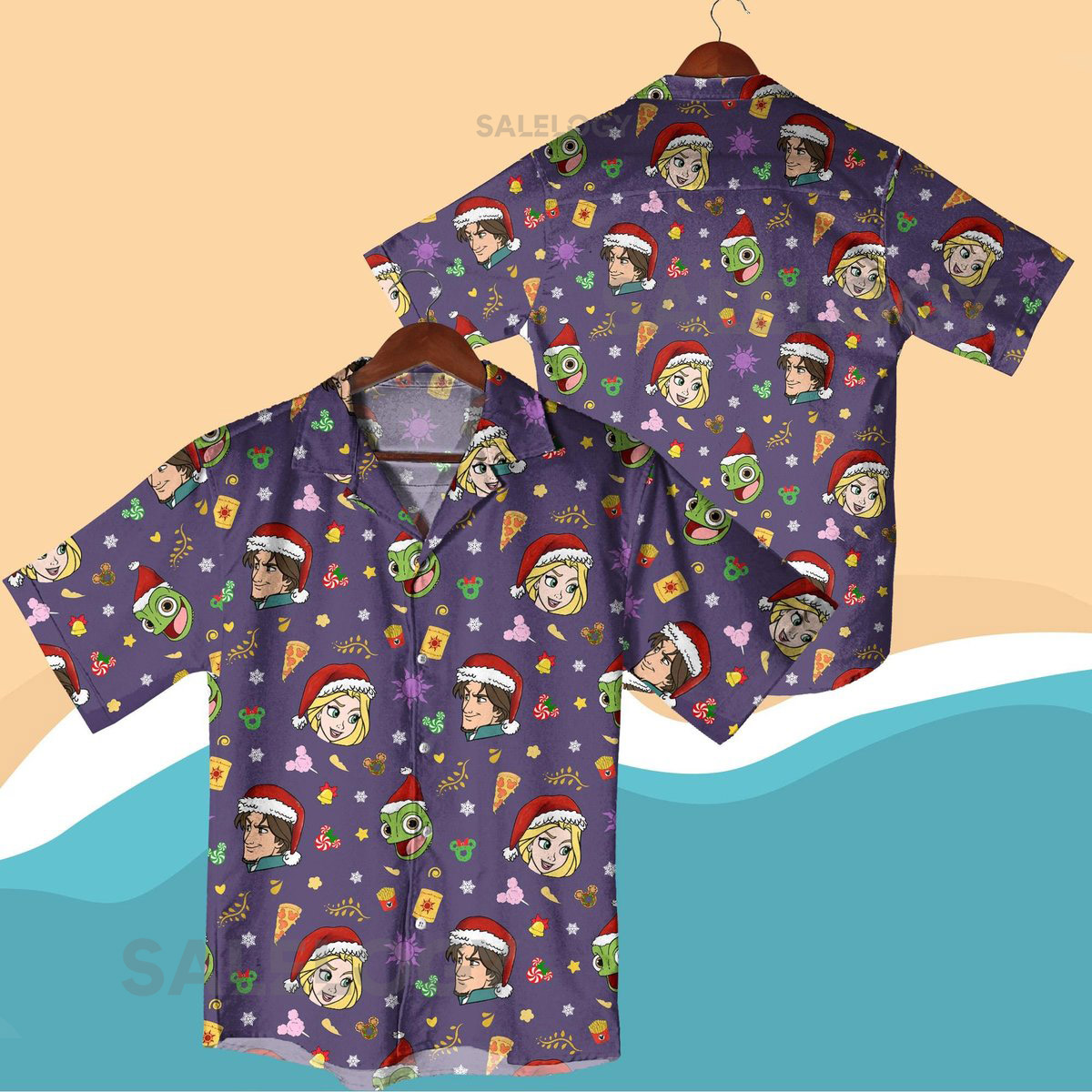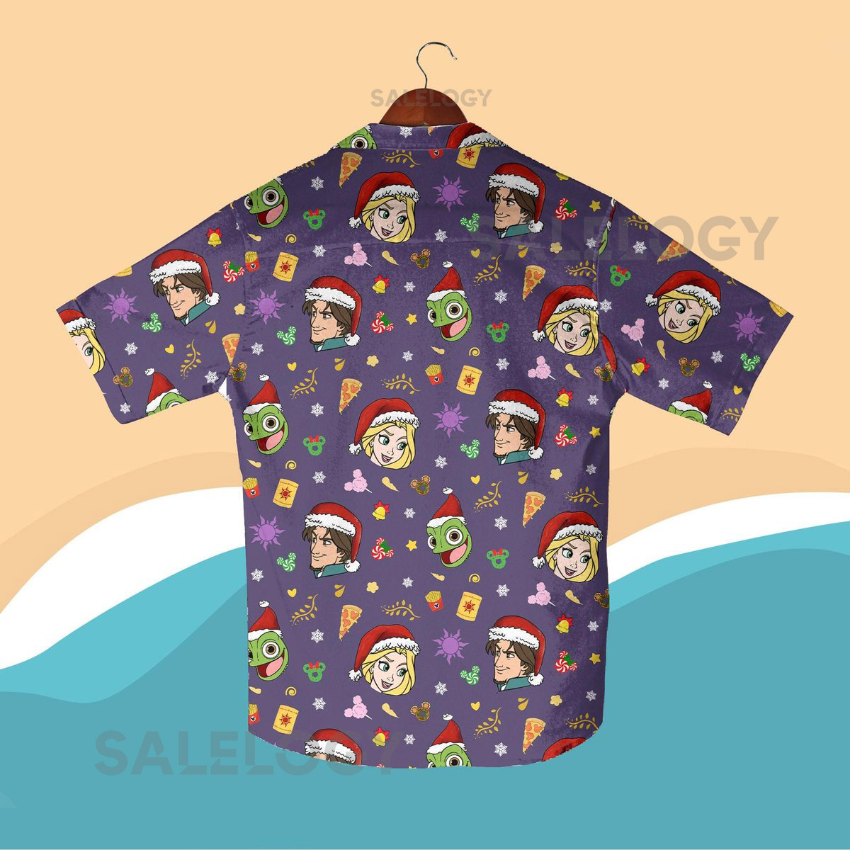 Christmas Fairy Tale Hawaiian Shirt Rapunzel Flynn Rider and Pascal Santa Hat Shirt Princess Hero Cartoon Outfit Christmas Shirt Gifts_15