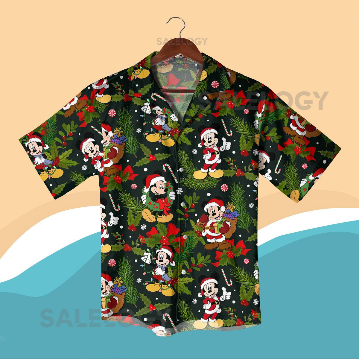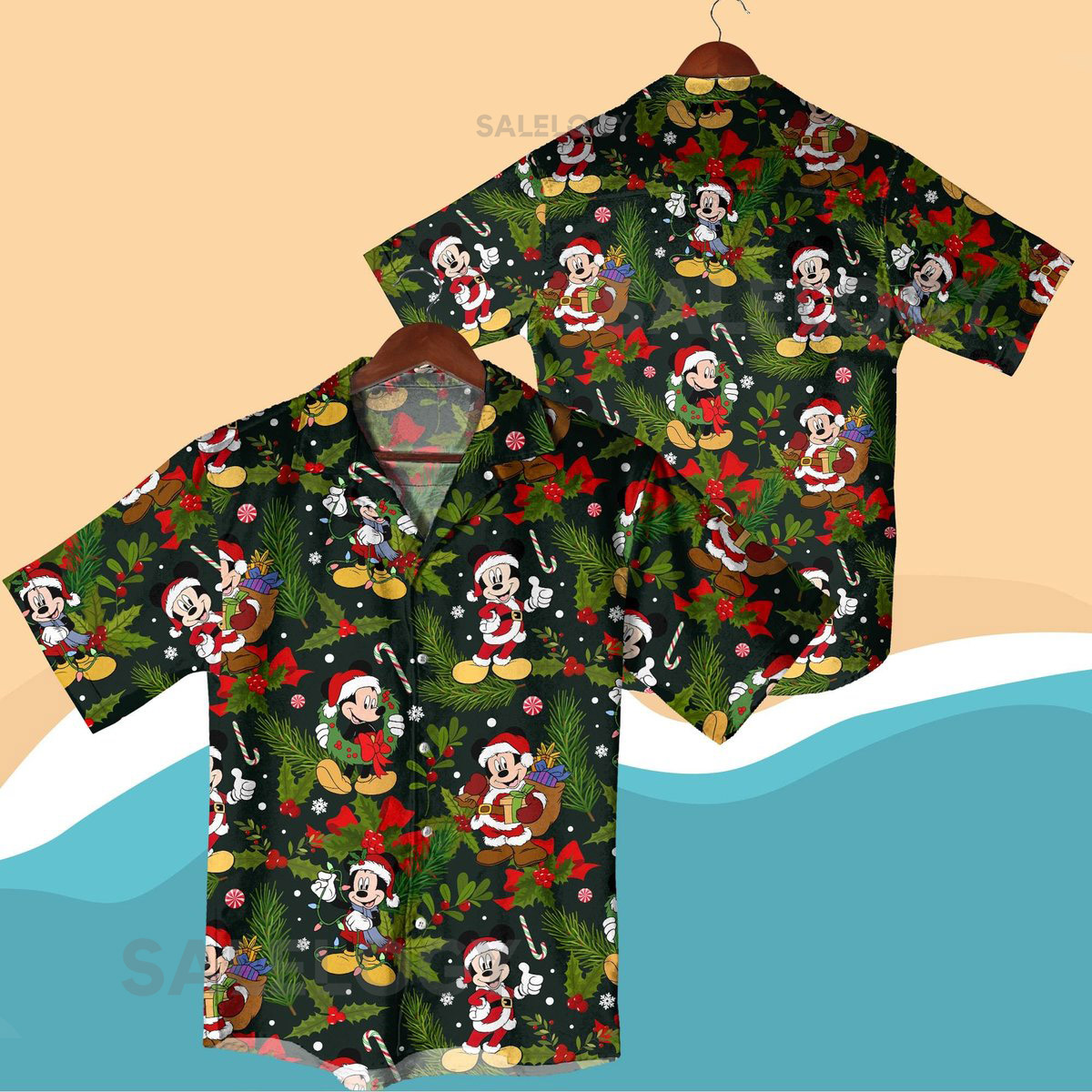 Christmas Mickey Hawaiian Shirt Set Holiday Vacation Outfit Santa Claus Mickey Minnie Button Down Shorts Festive Xmas Matching Set Gifts_38