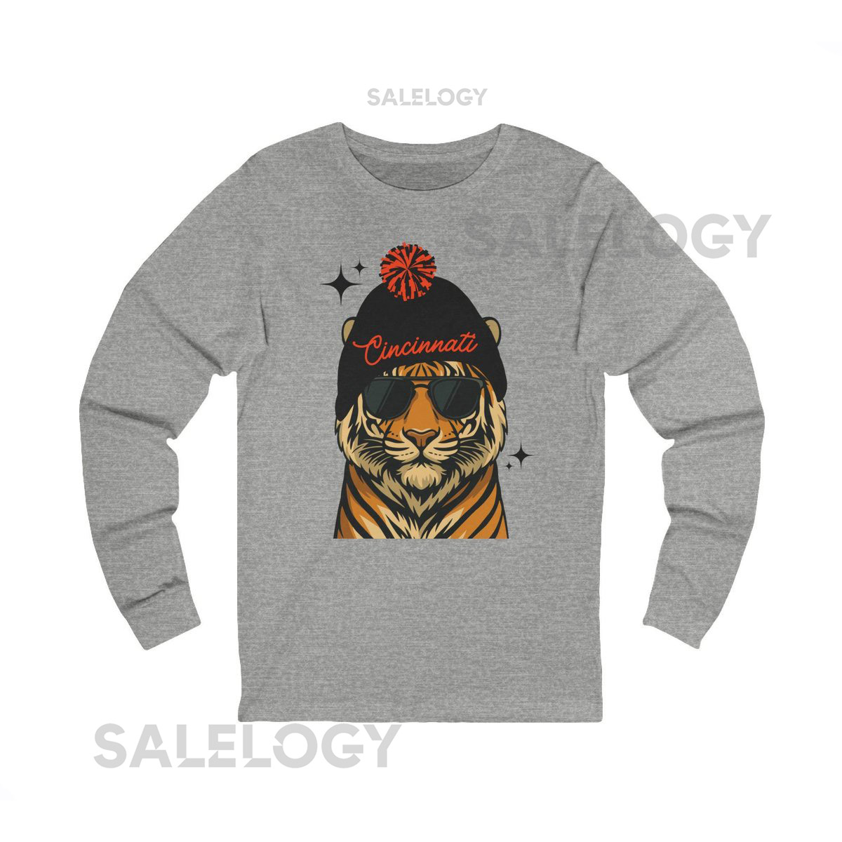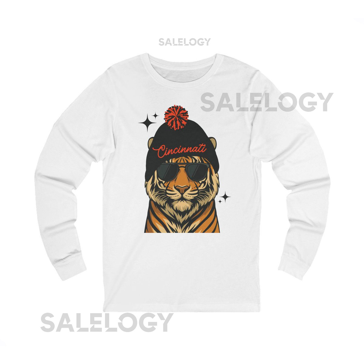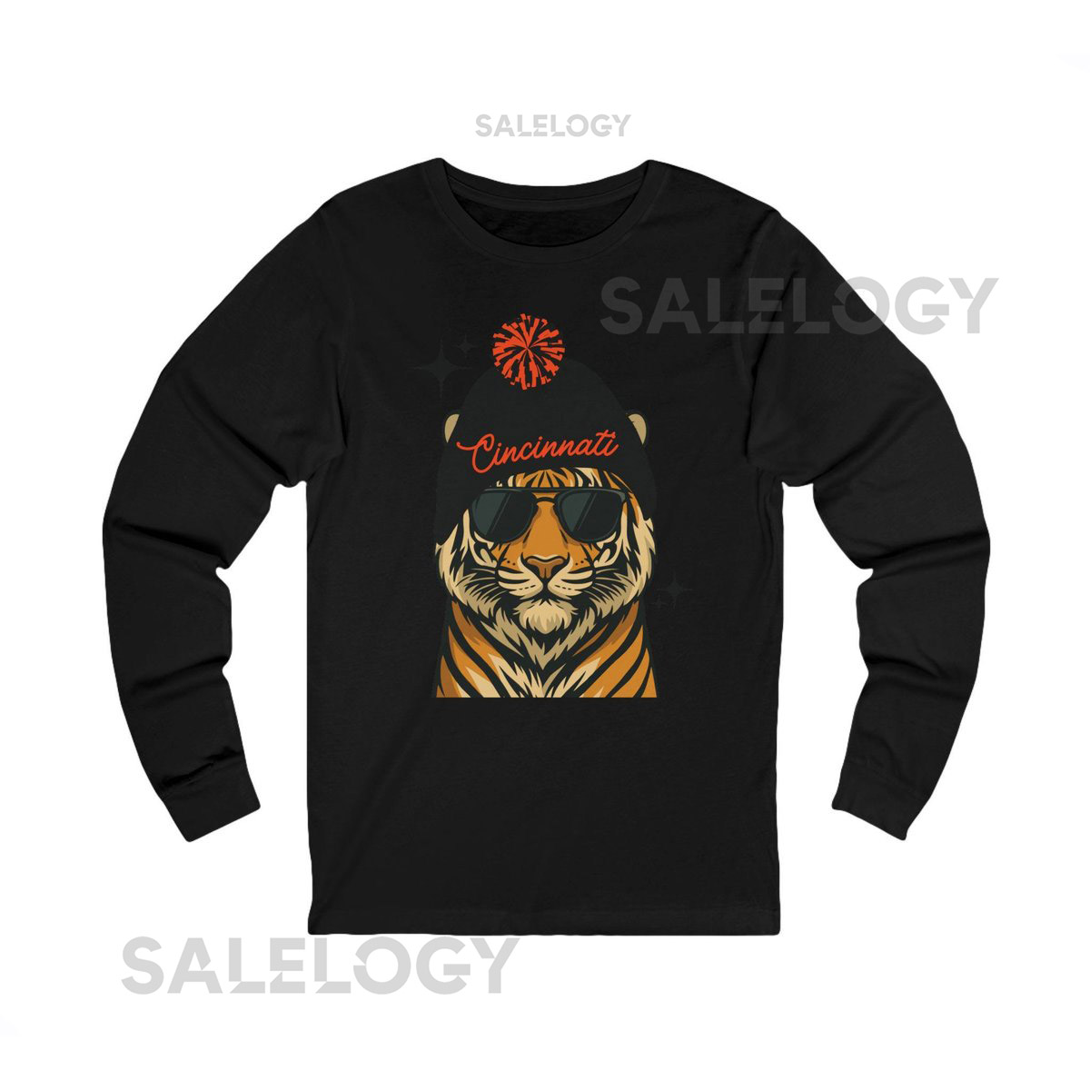 Cincinnati Football Fan Shirt Long Sleeve Bengal Tiger Graphic Tee_526