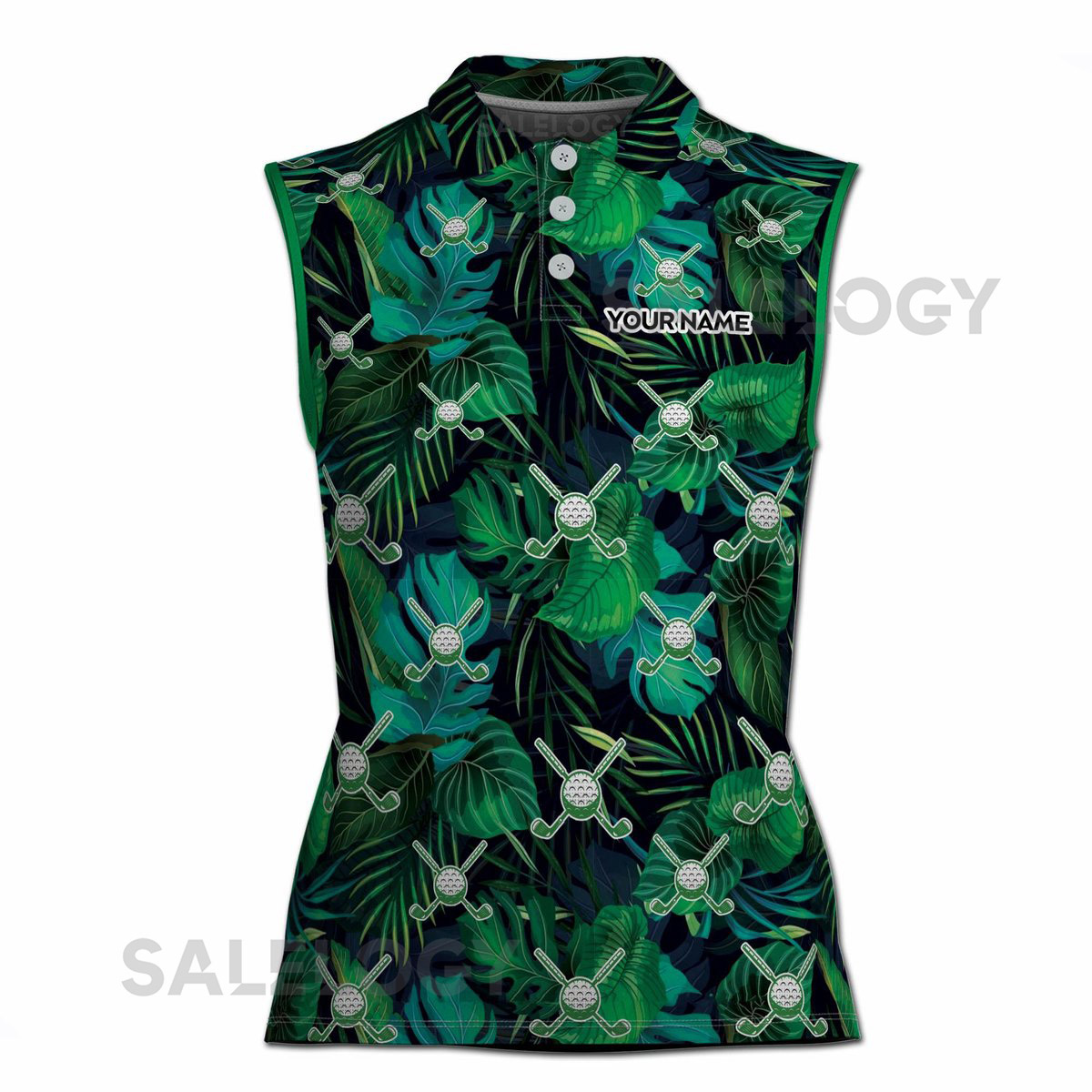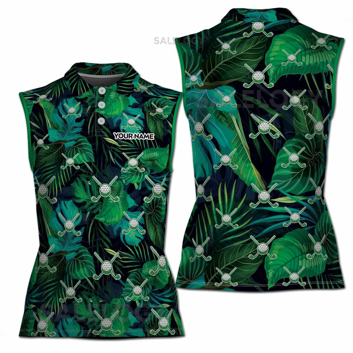 Custom Green Tropical Palm Leaf Golf Lover Women39s Polo Shirt S-5XL_31