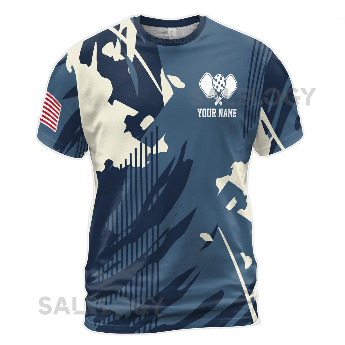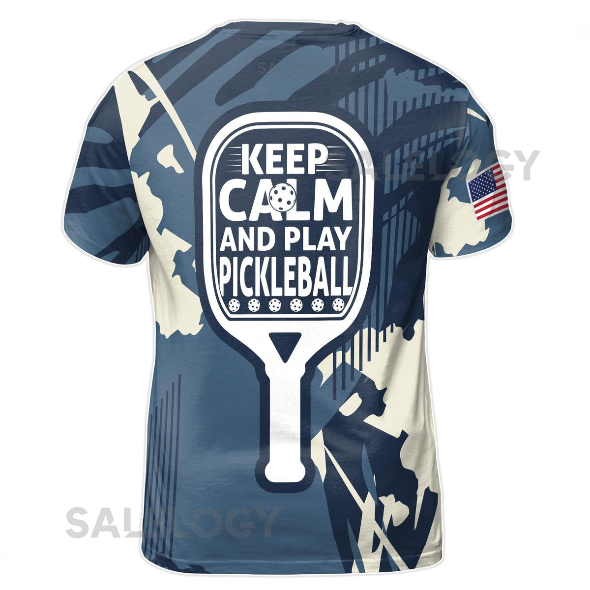 Custom Name America Camo Blue Keep Calm And Play Pickleball Men39s T-Shirt S-5XL_11