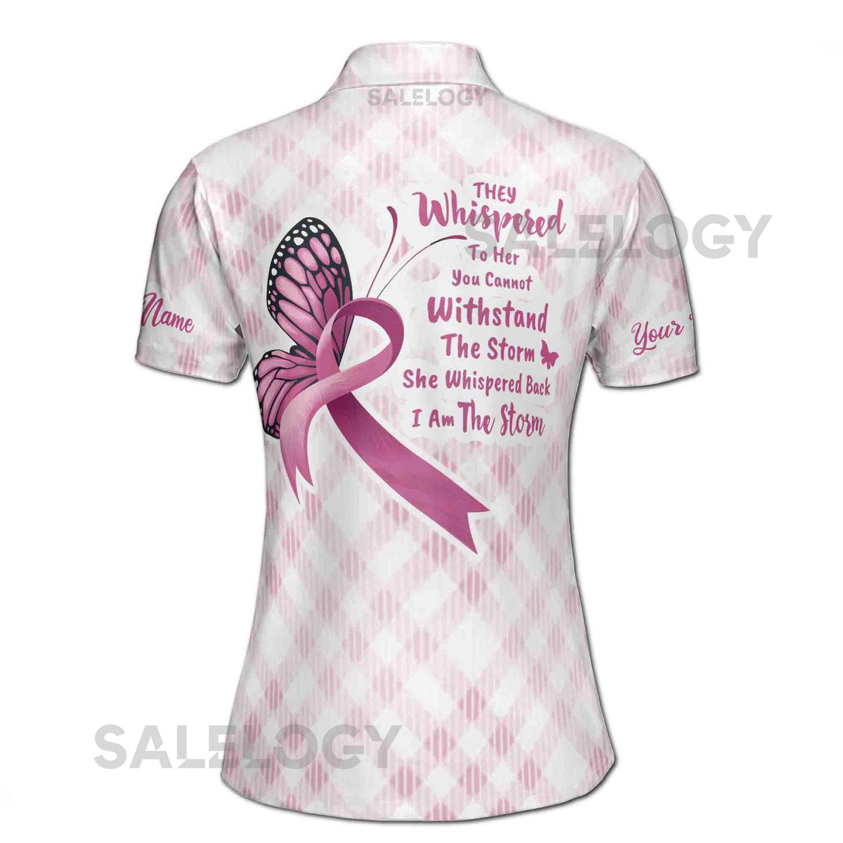 Custom Name Breast Cancer Month She is The Storm Women39s Polo S-5XL_57