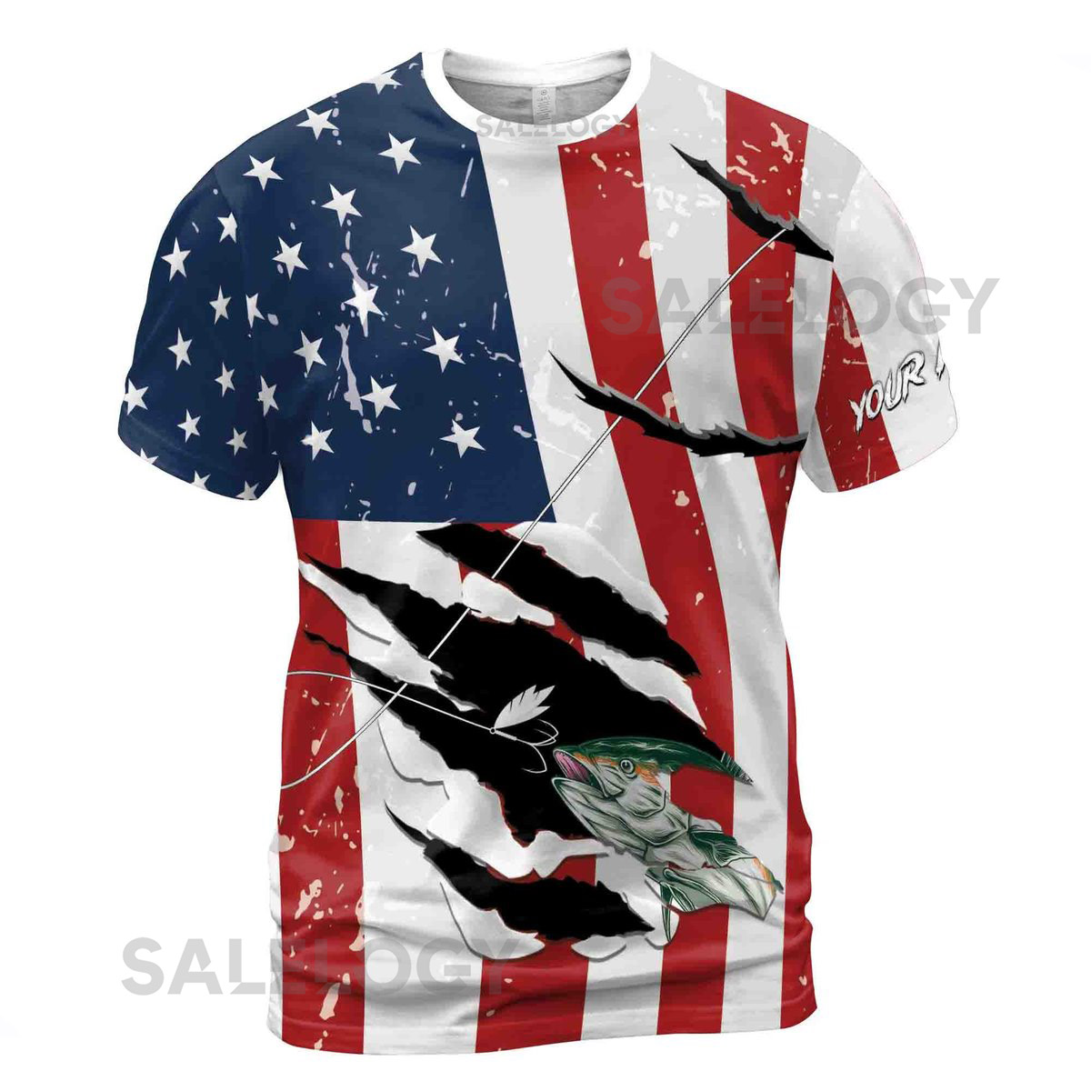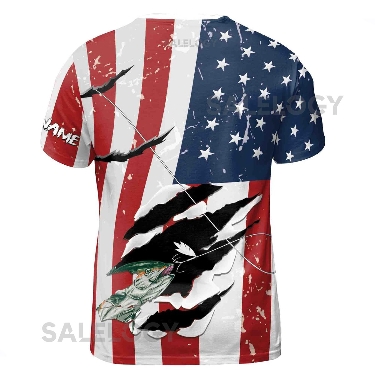 Custom Name Fishing Fish Hook Grunge American Flag Patriotic 3D T-Shirt S-5XL_43