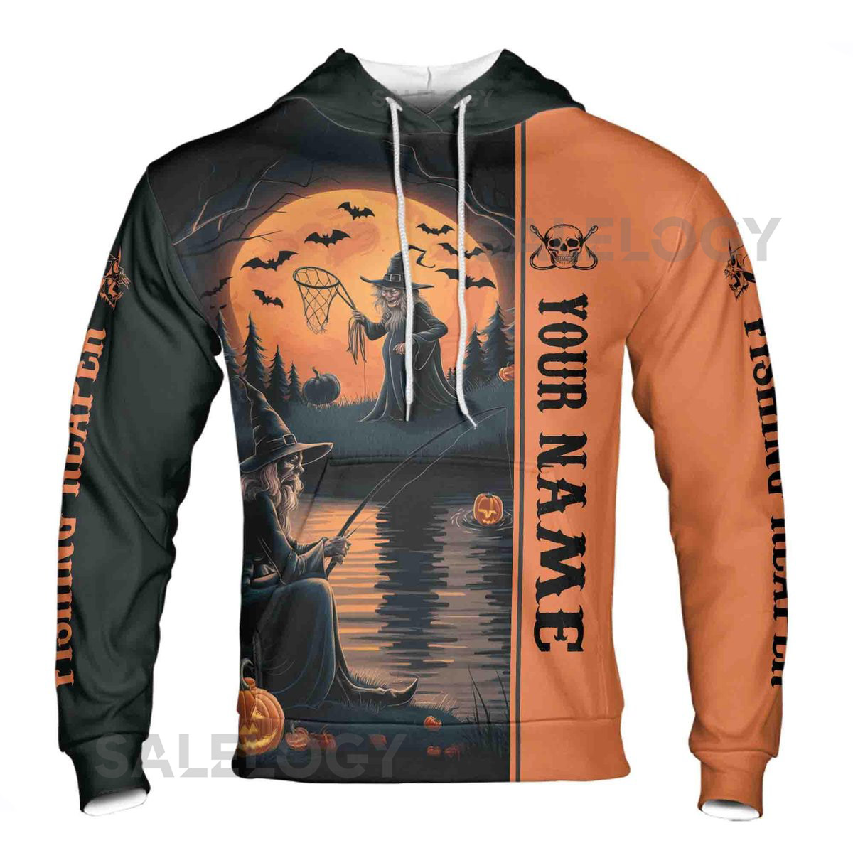 Custom Name Fishing Reaper Halloween Hoodie_23
