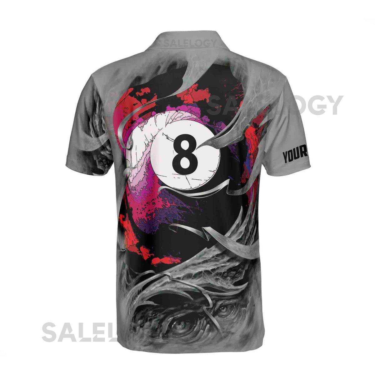 Custom Name Gray Skull Billiard 8 Balls Skeleton Pool Men39s Polo Shirt S-5XL_107