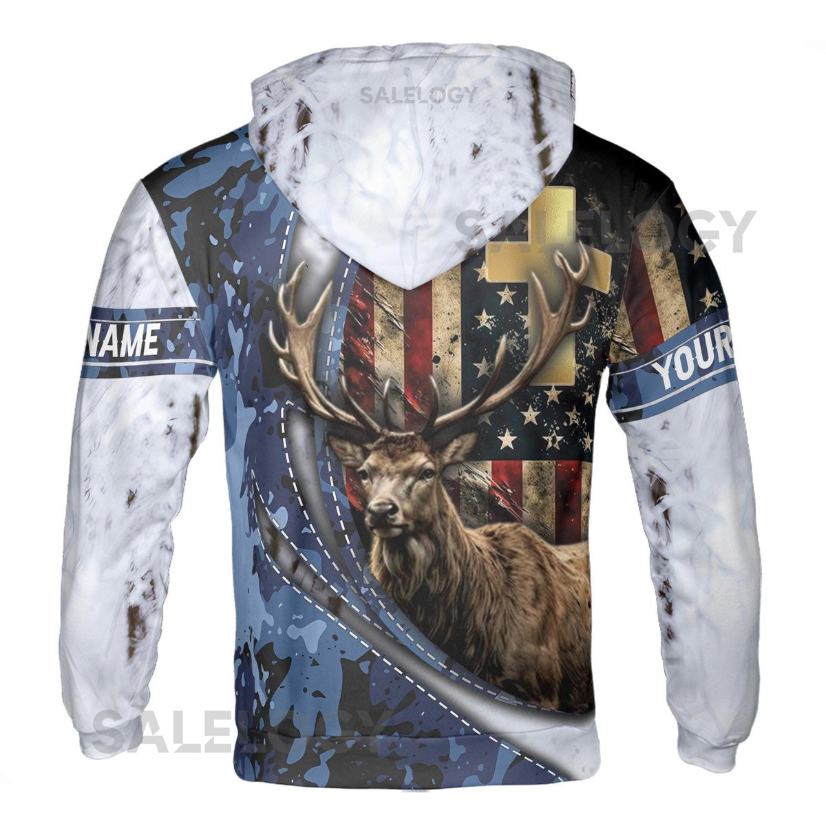 Custom Name Hunting Deer American Camouflage Flag Pattern Hoodie S-5XL_34