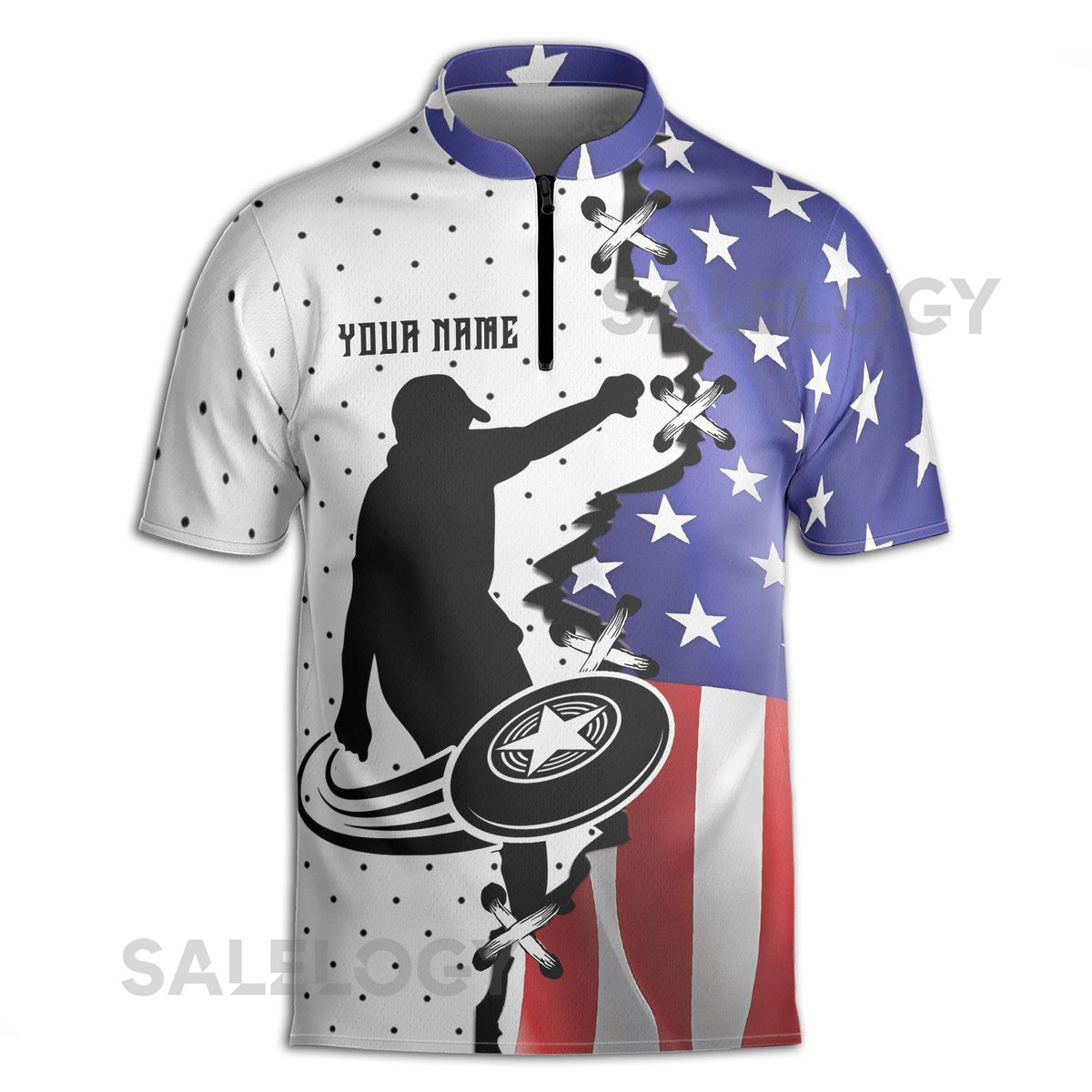 Custom Name Patriotic America Disc Golf Lover Zipper Polo Shirt S-5XL_138