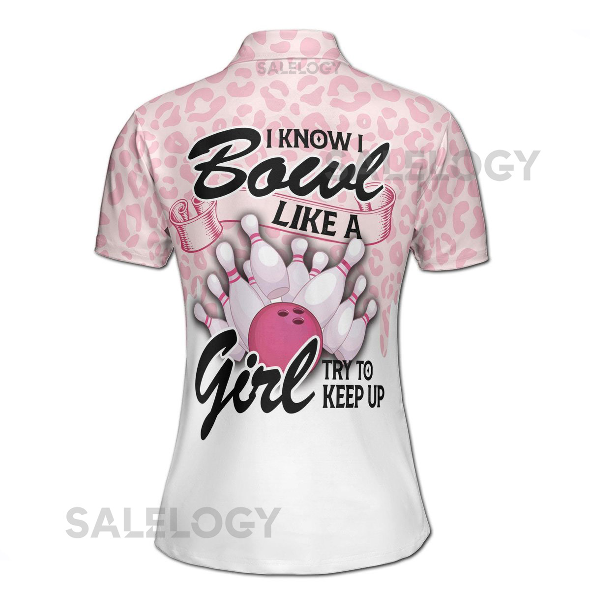 Custom Name Pink Pattern I Know I Bowl Like A Girl Women39s Polo Shirt S-5XL_159