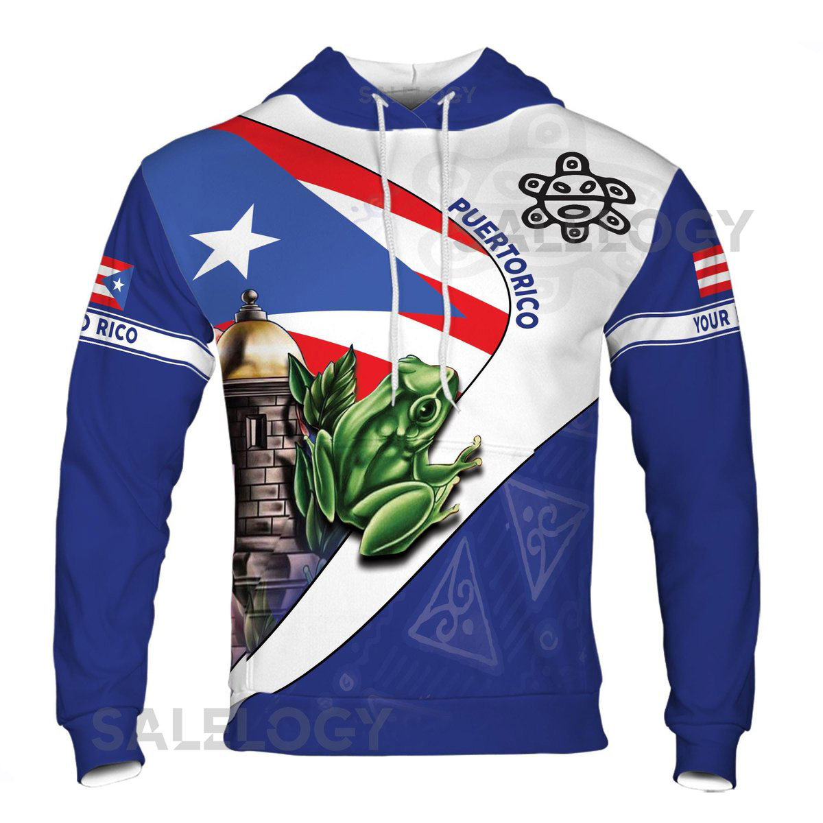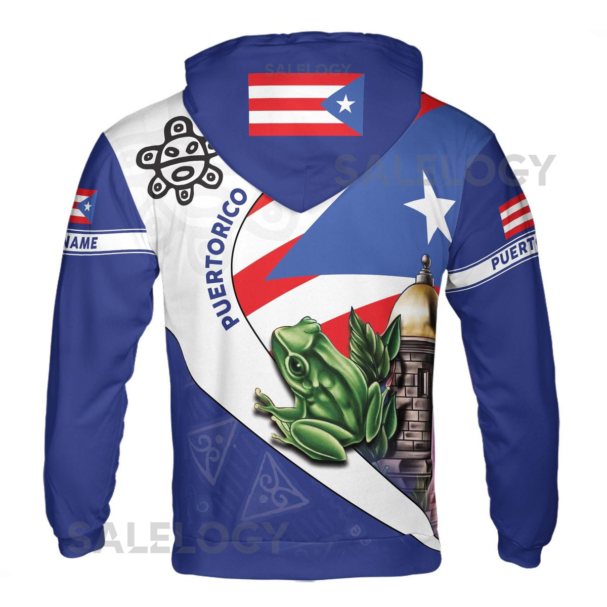 Custom Name Puerto Rico Frog Symbol Patriotic Hoodie S-5XL_63
