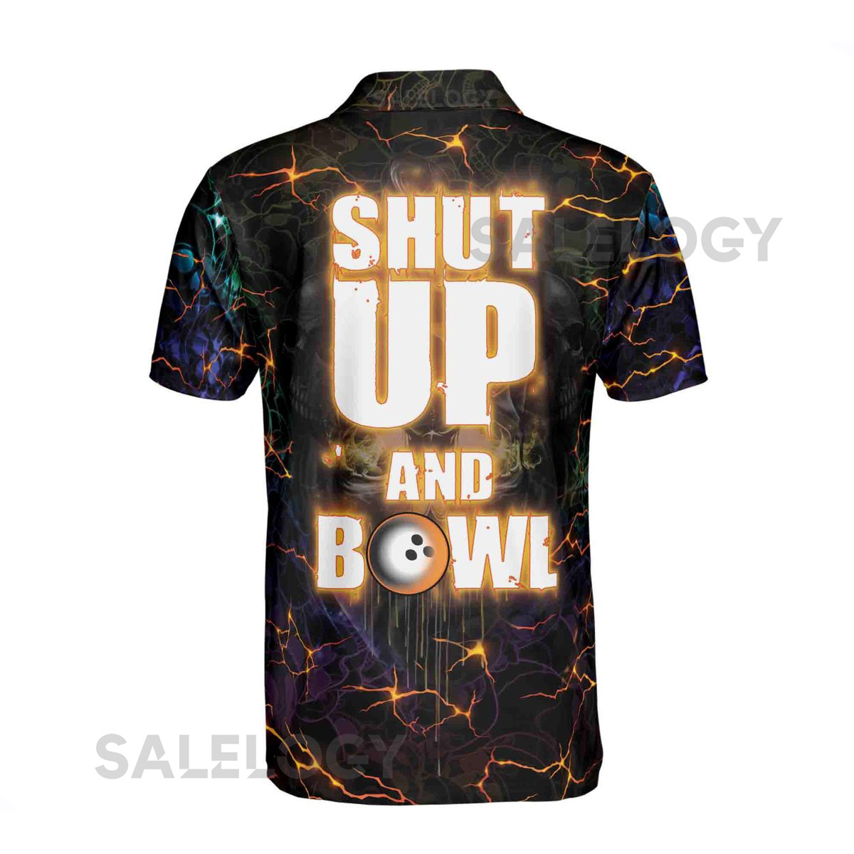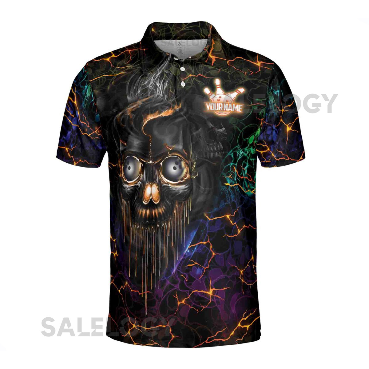 Custom Name Skull Bowling Polo Shirt Neon Lighting Skull Bowl Design_172