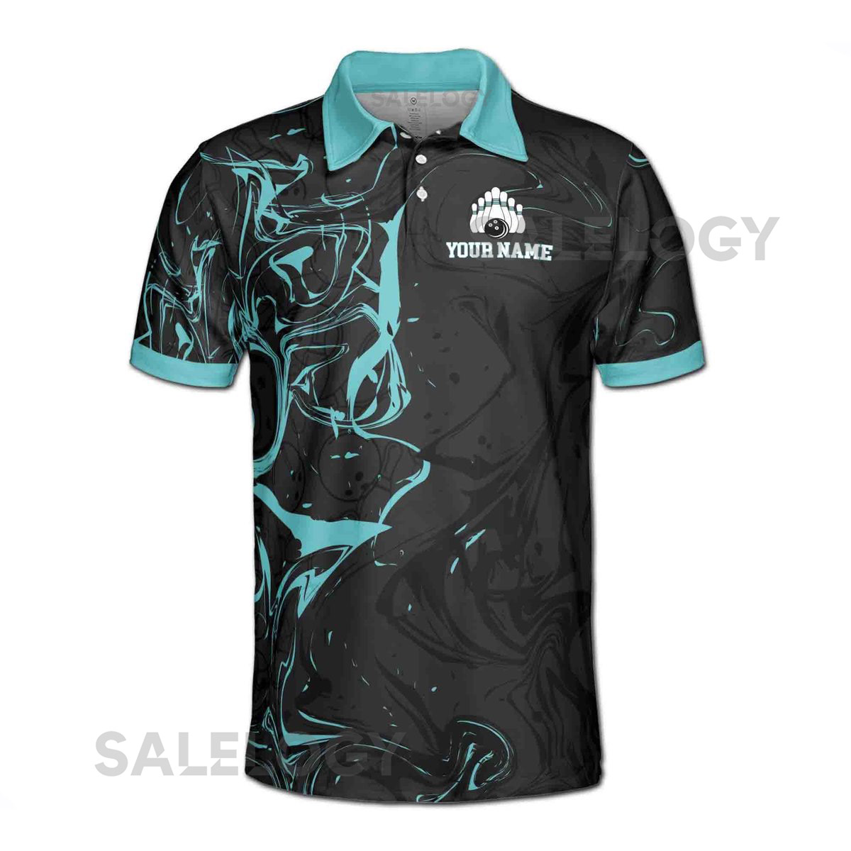Custom Name Team Name Teal Marble Bowlling Ball Men39s Polo Shirt S-5XL_204