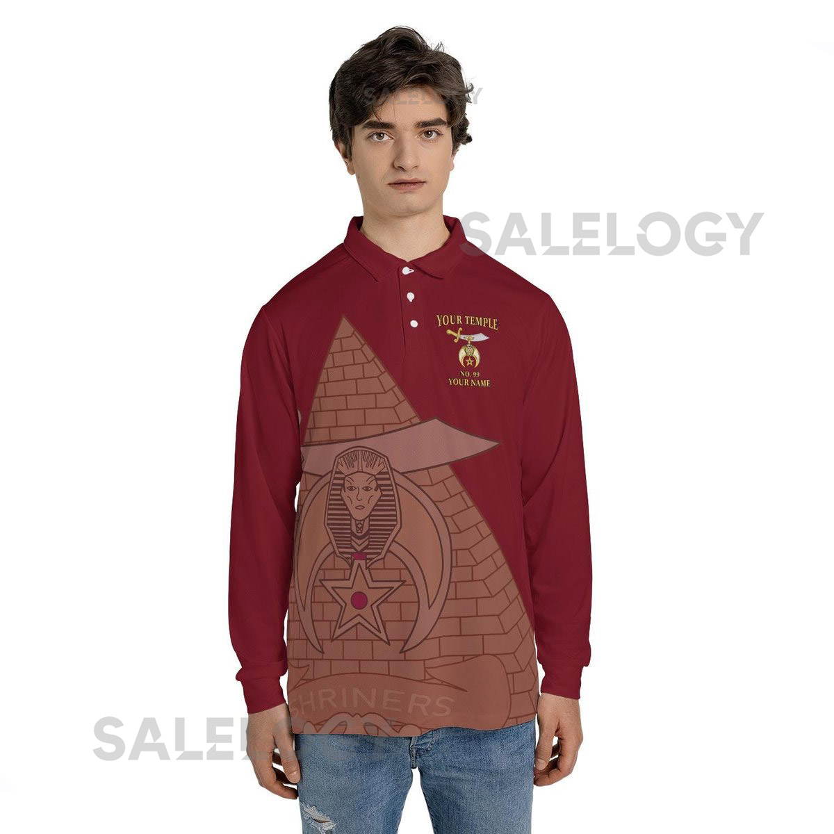 Custom Name Temple Shriners Noble Ancient Long Sleeve Polo Shirt S-5XL_209