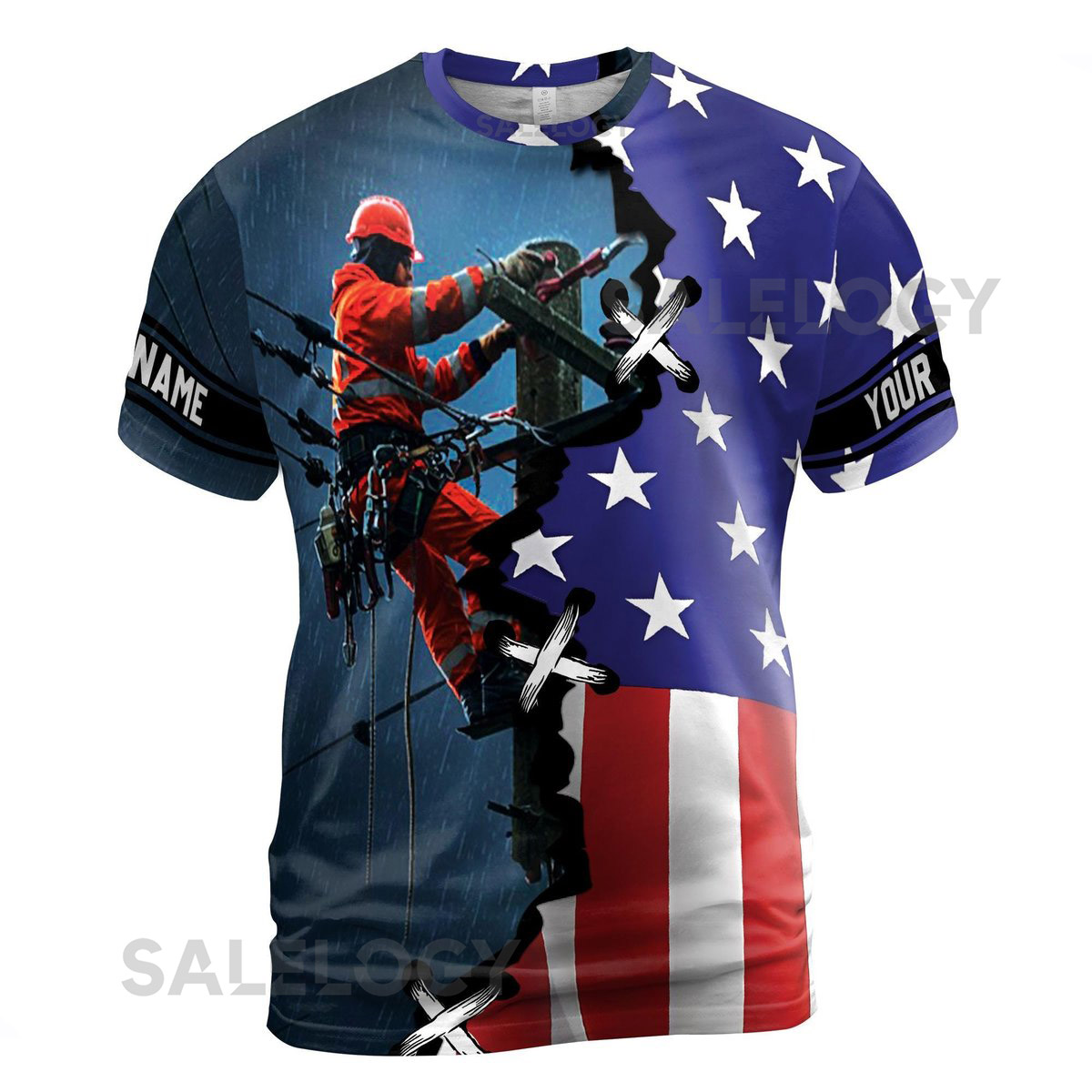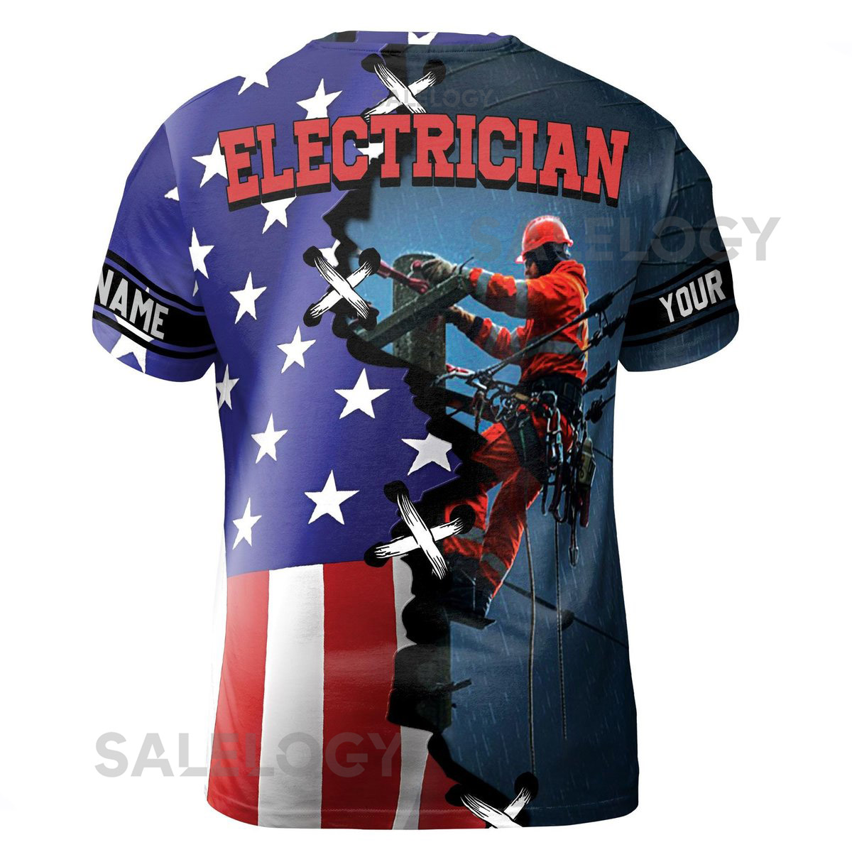 Customizable Electrician American Flag 3D T-Shirt S-5XL_115