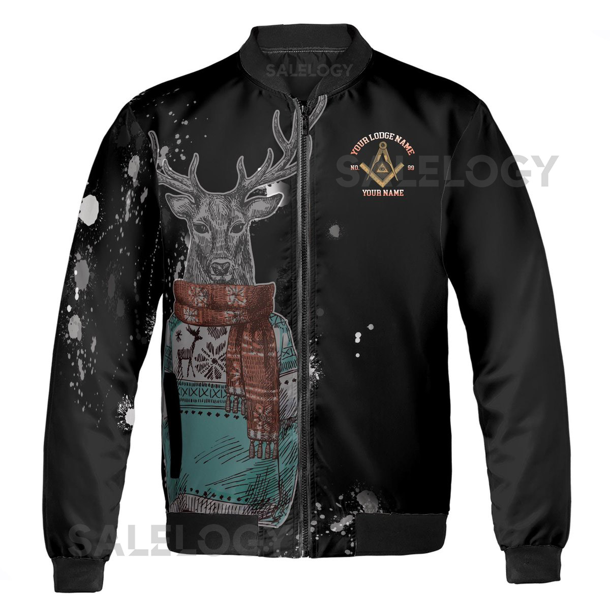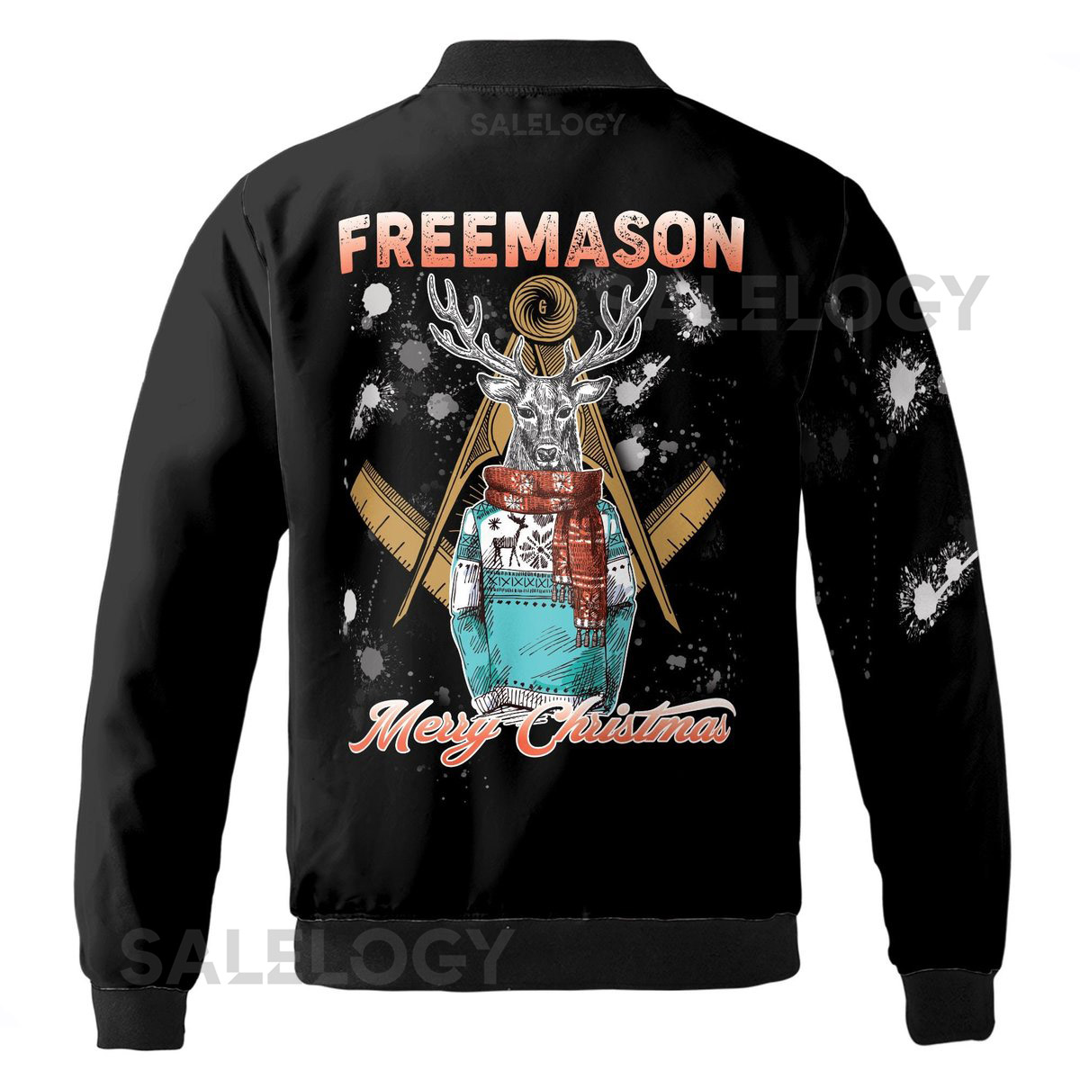 Customize Freemason Christmas Reindeer In Clothing Splashes Pattern Bomber Jacket S-5XL_42