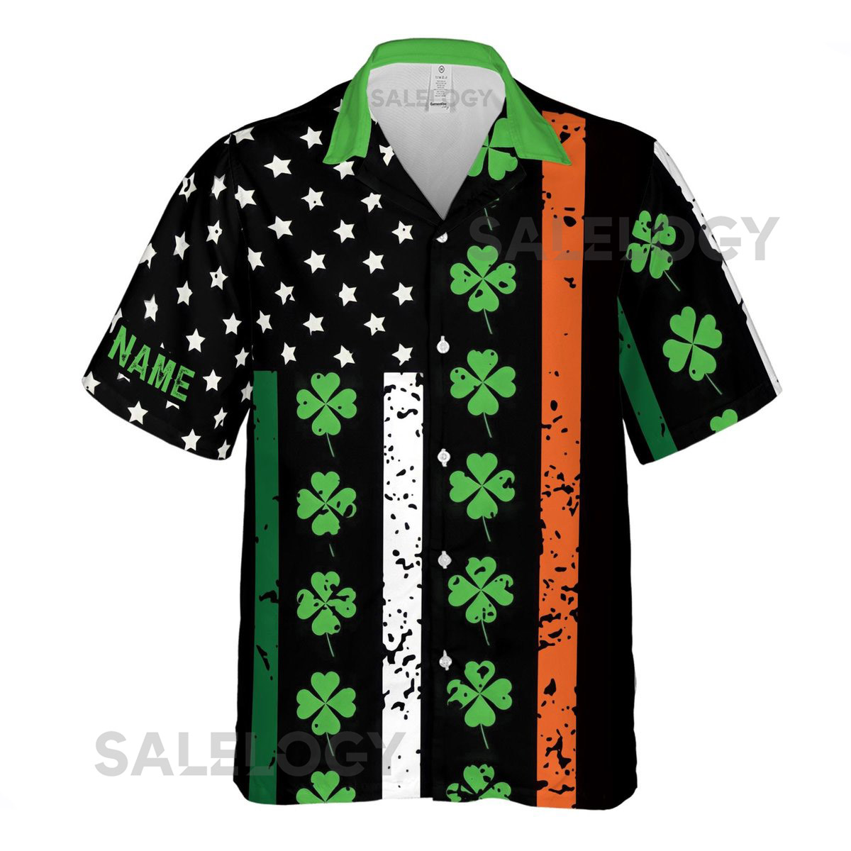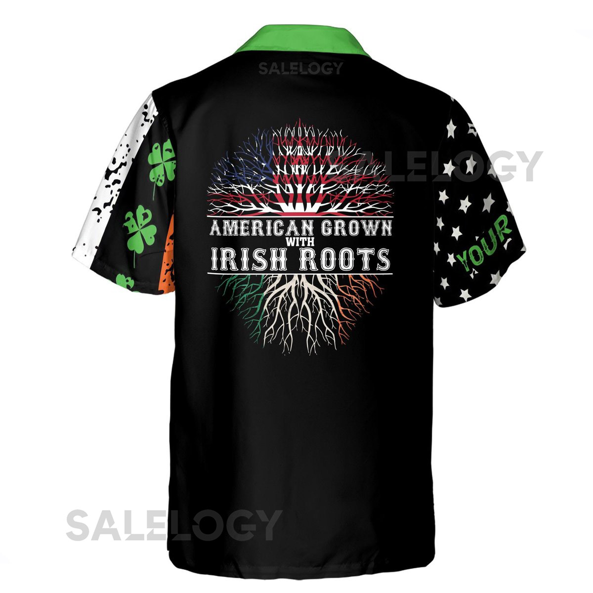 Customize Name American Grown With Irish Roots Clover Pattern Black Hawaiian Shirt S-5XL_19