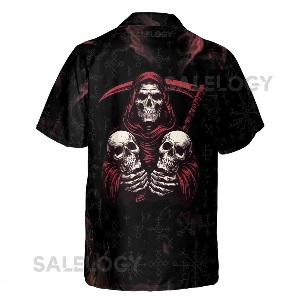 Customize Name Grim Reaper Scythe And Skulls Fire Runes Pattern Hawaiian Shirt S-5XL_24