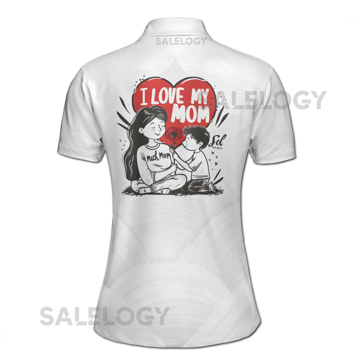 Customize Name I Love My Mom Floral Disc Pattern White Women39s Polo Shirt S-5XL_299