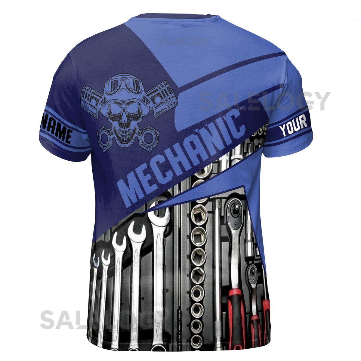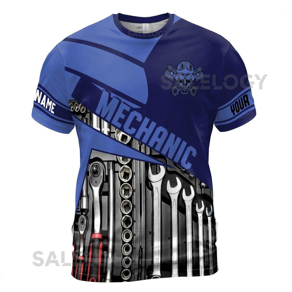 Customize Name Mechanic Tools Skull Skilled Labor Industrial Art Blue 3D T-Shirt S-5XL_149