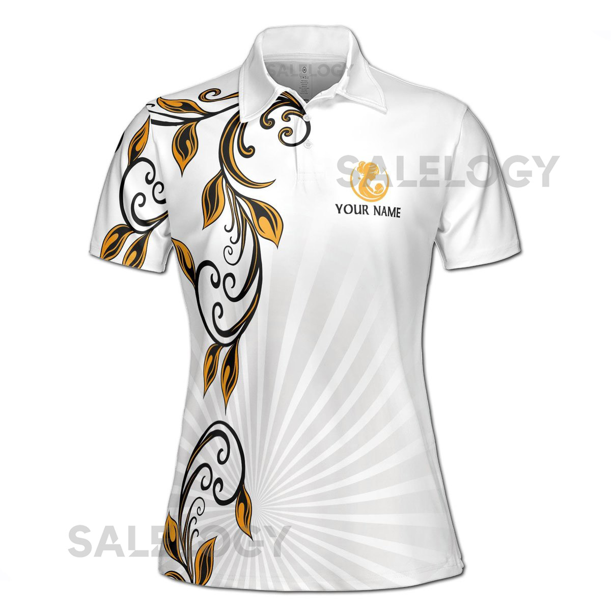 Customize Name Mom And Baby Vines Swirl Pattern White Women39s Polo Shirt S-5XL_321