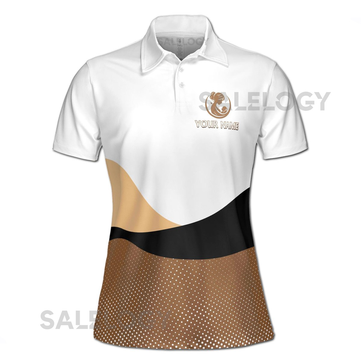 Customize Name One Loved Mama Floral Dots Pattern White Brown Women39s Polo Shirt S-5XL_353