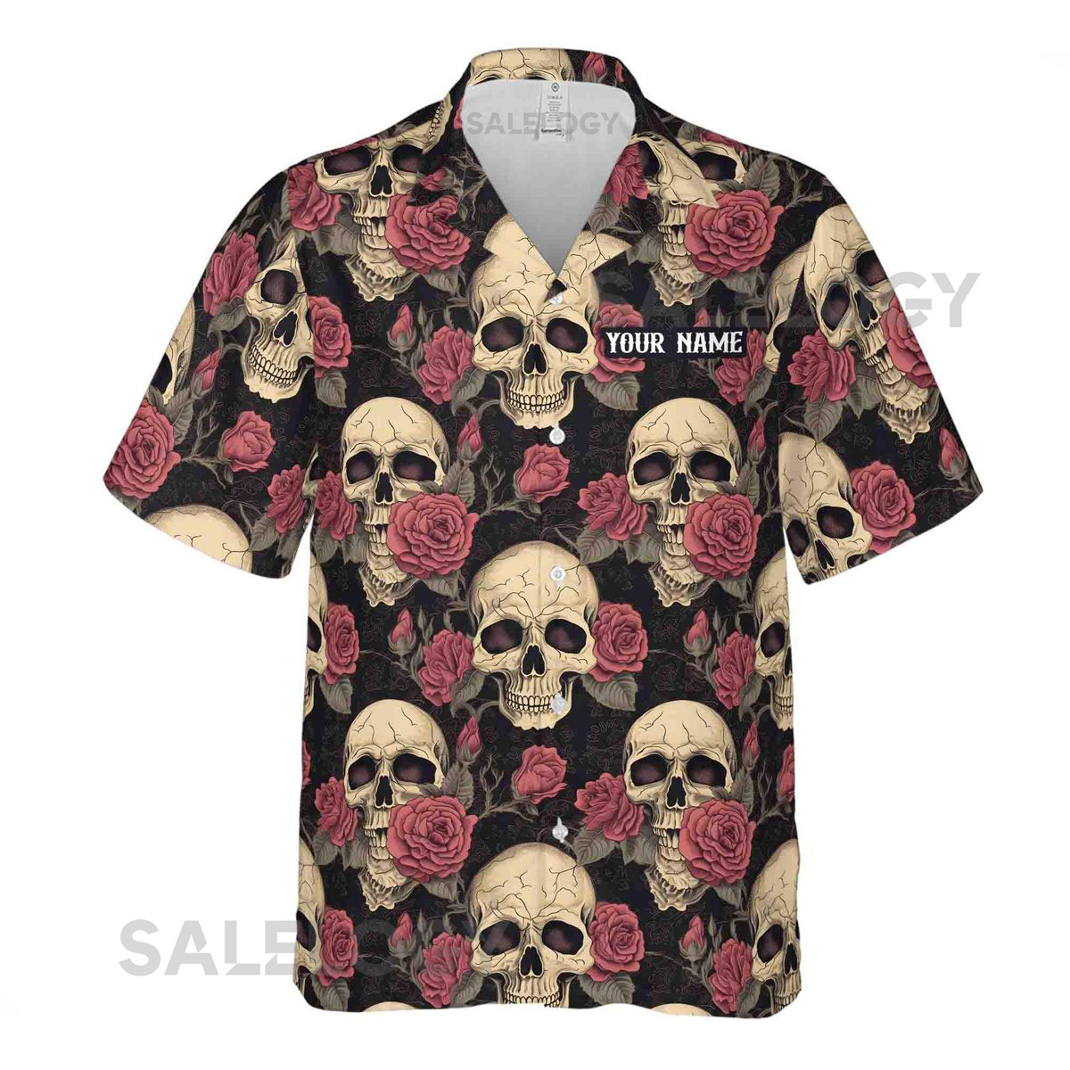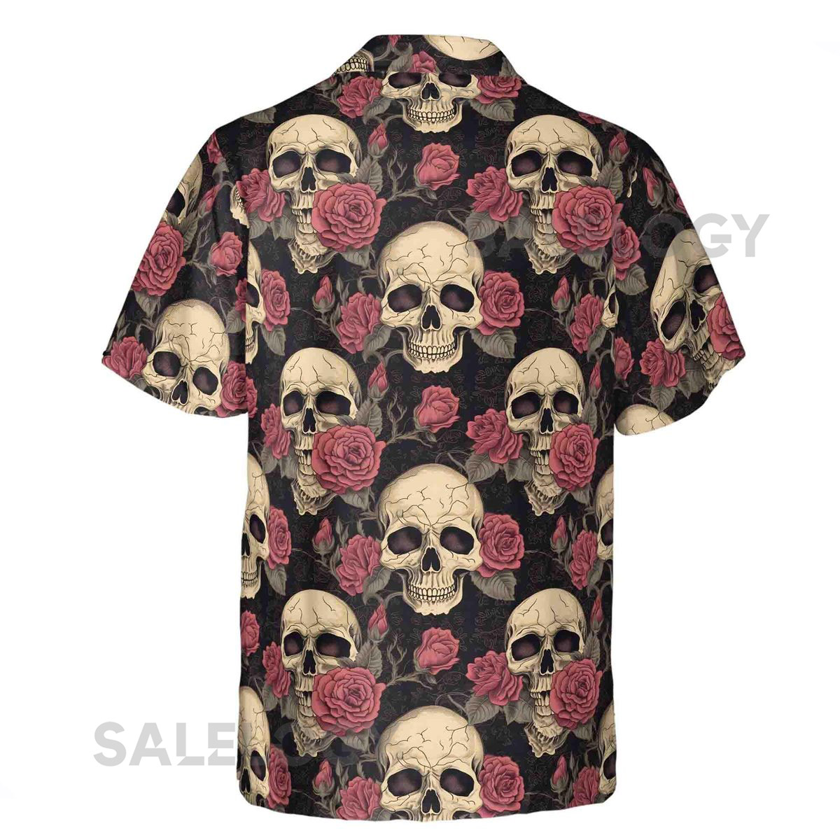 Customize Name Skull And Red Rose Gothic Pattern Black Hawaiian Shirt S-5XL_30