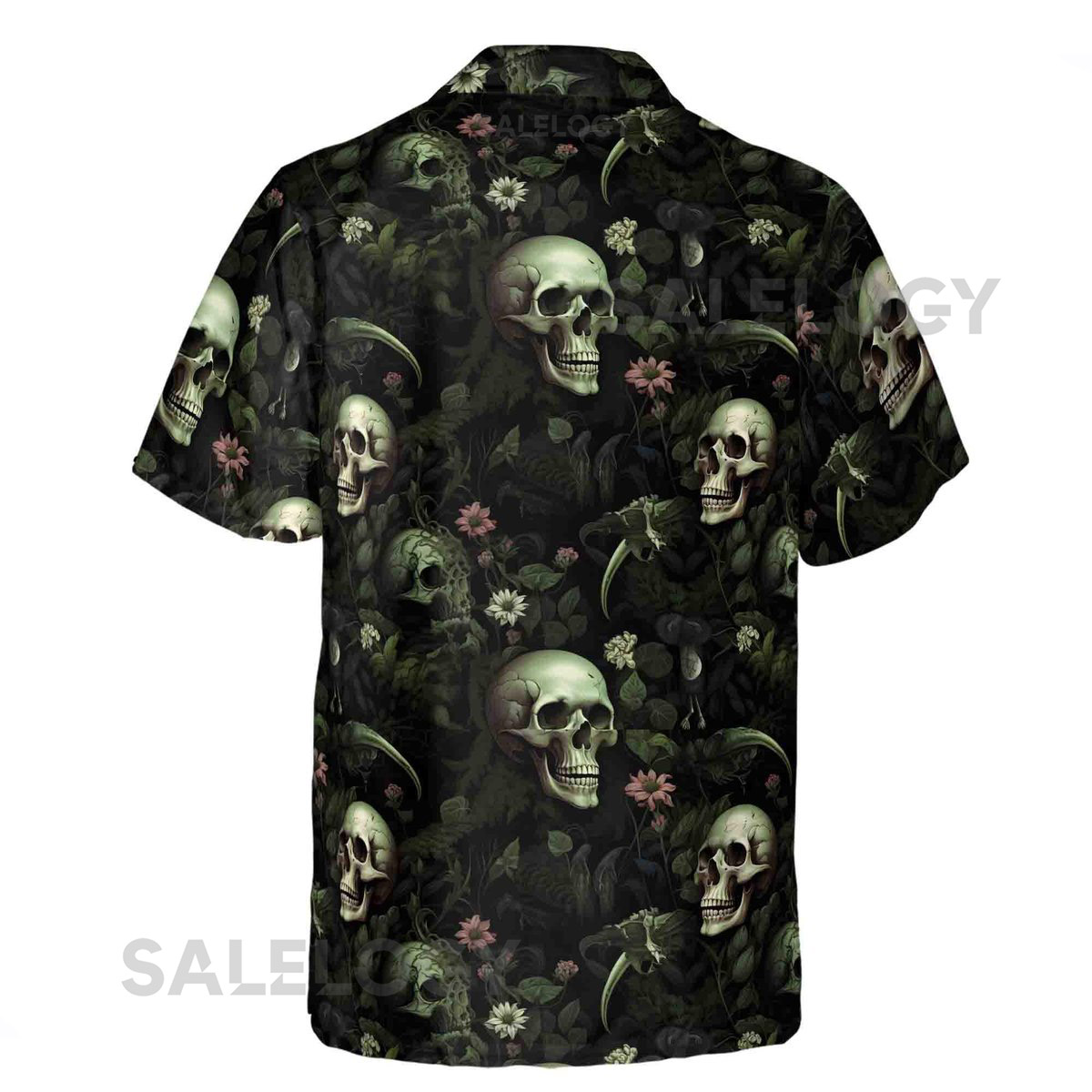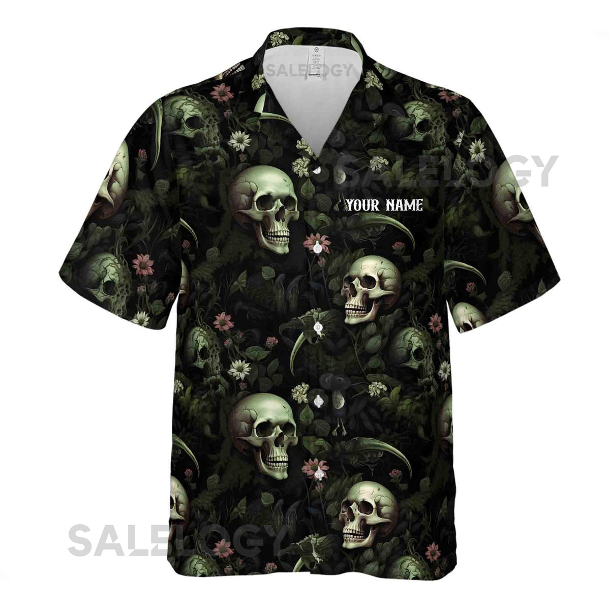 Customize Name Skull Mossy Forest Pattern Green Black Hawaiian Shirt S-5XL_31