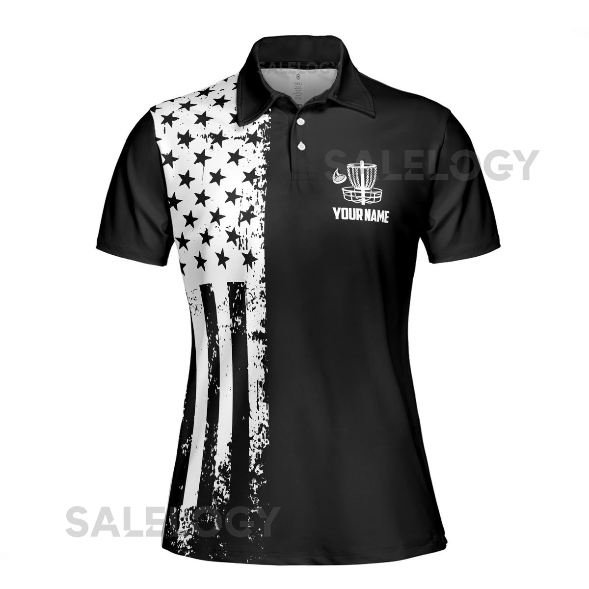 Customize Team Name Disc Golf American Flag Black White Women39s Polo Shirt S-5XL_382