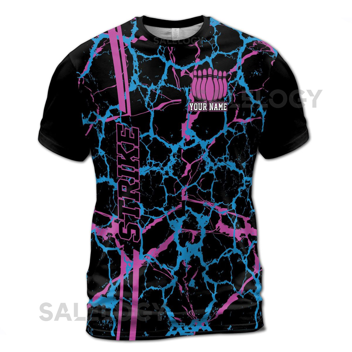 Customized Bowling Team Purple Blue Bowling Pin Strike 3D T-Shirt S-5XL_169