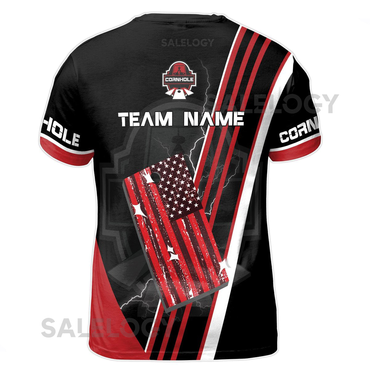 Customized Cornhole Team Retro American Flag Black and Red Men39s T-shirt S-5XL_170