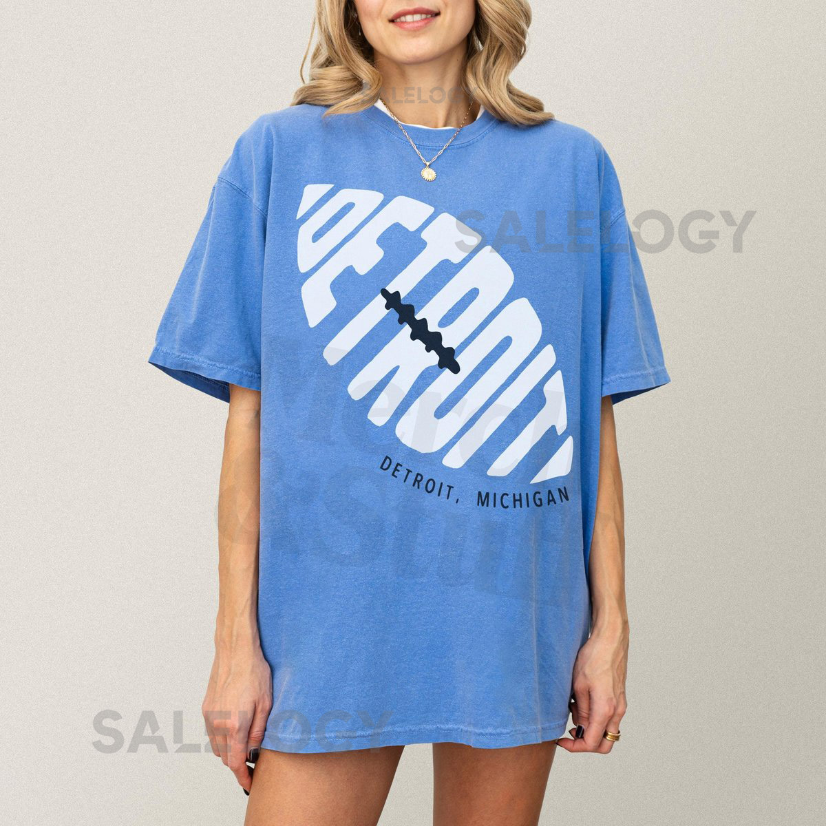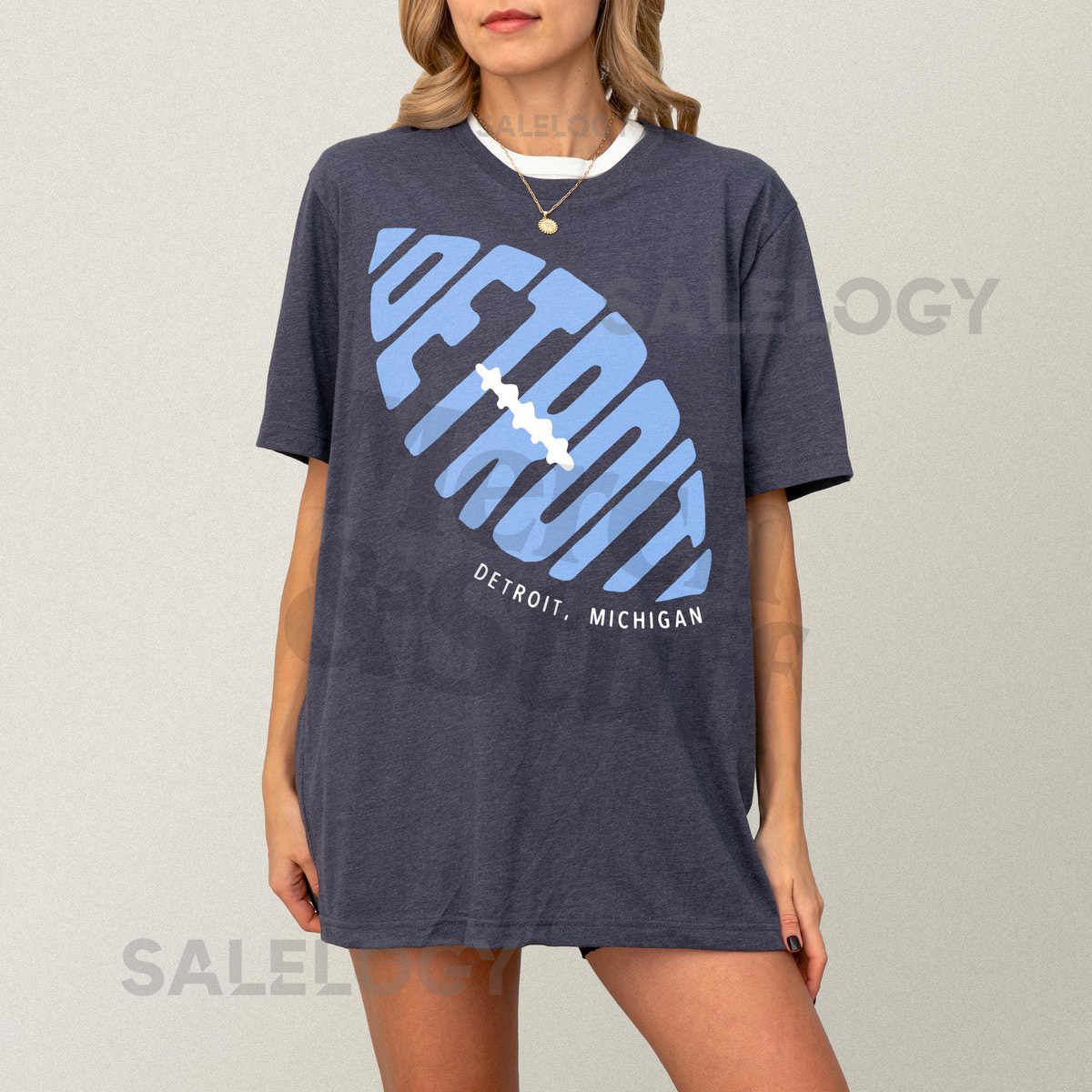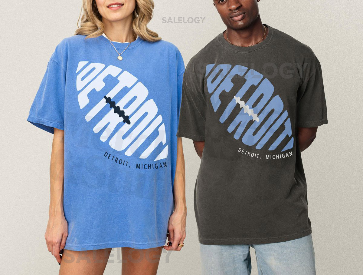 Detroit Football Graphic Tee Unisex Blue White Black DET Michigan Football Fan Apparel Retro Detroit Streetwear Game Day T-Shirt_110