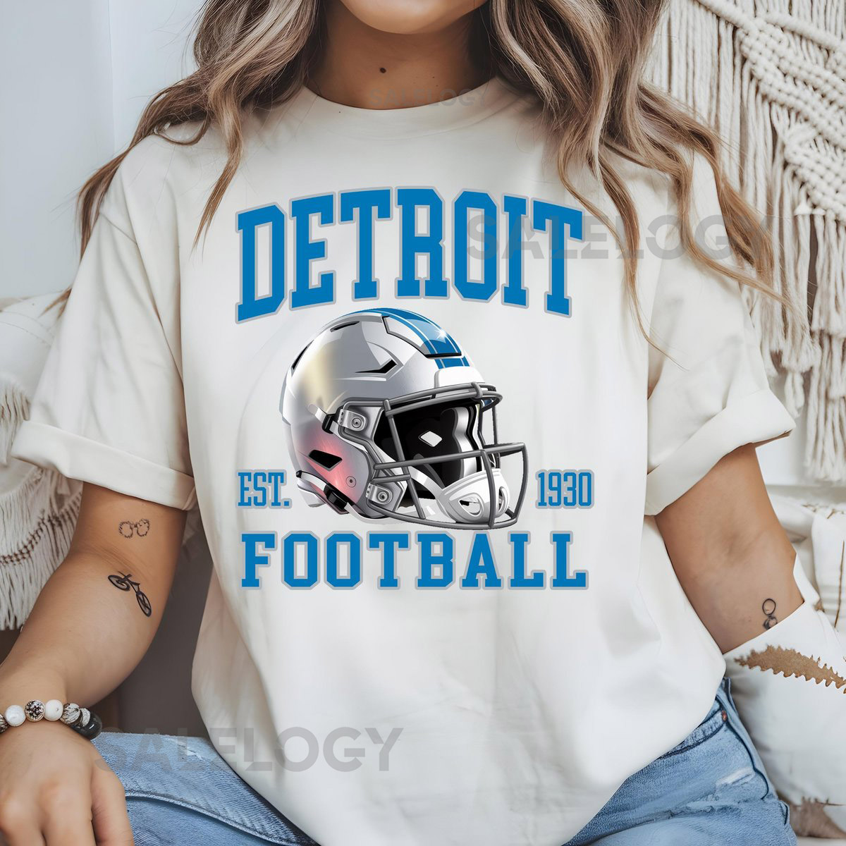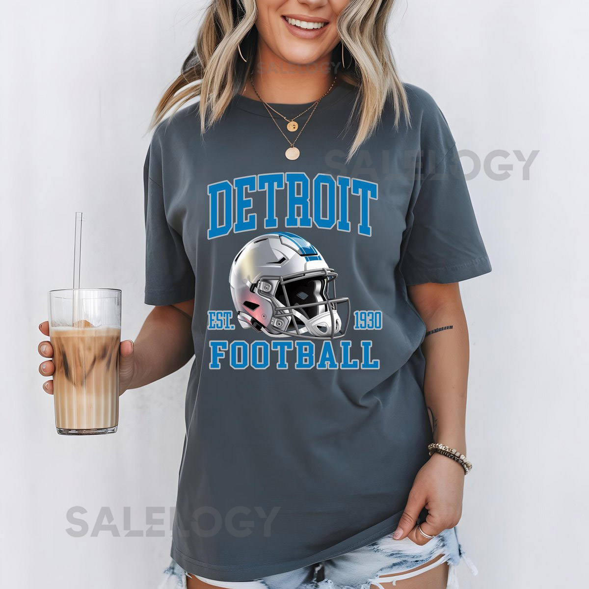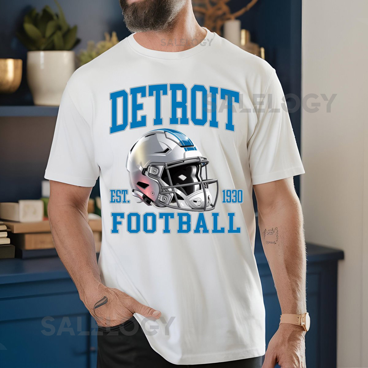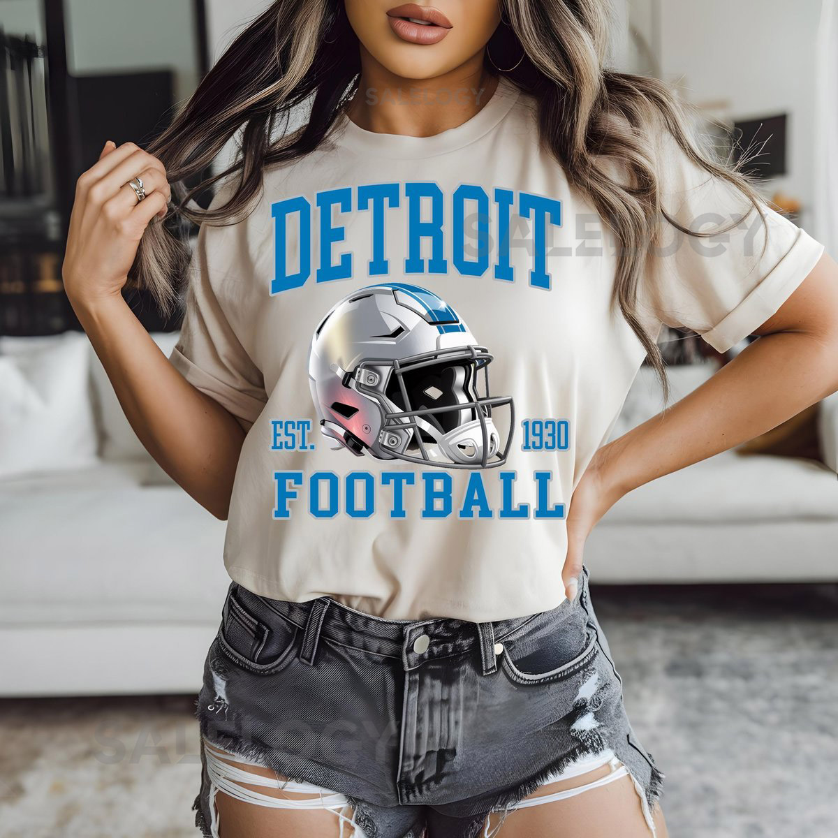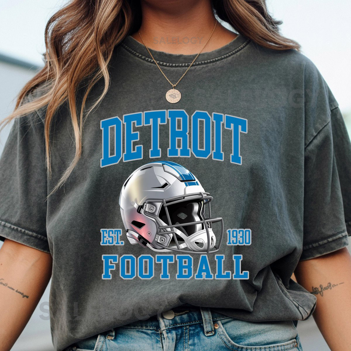 Detroit Football Helmet Comfort Colors T-Shirt Sweatshirt Detroit Lions Tee Sports Fan Apparel Game Day Outfit Football Season_112