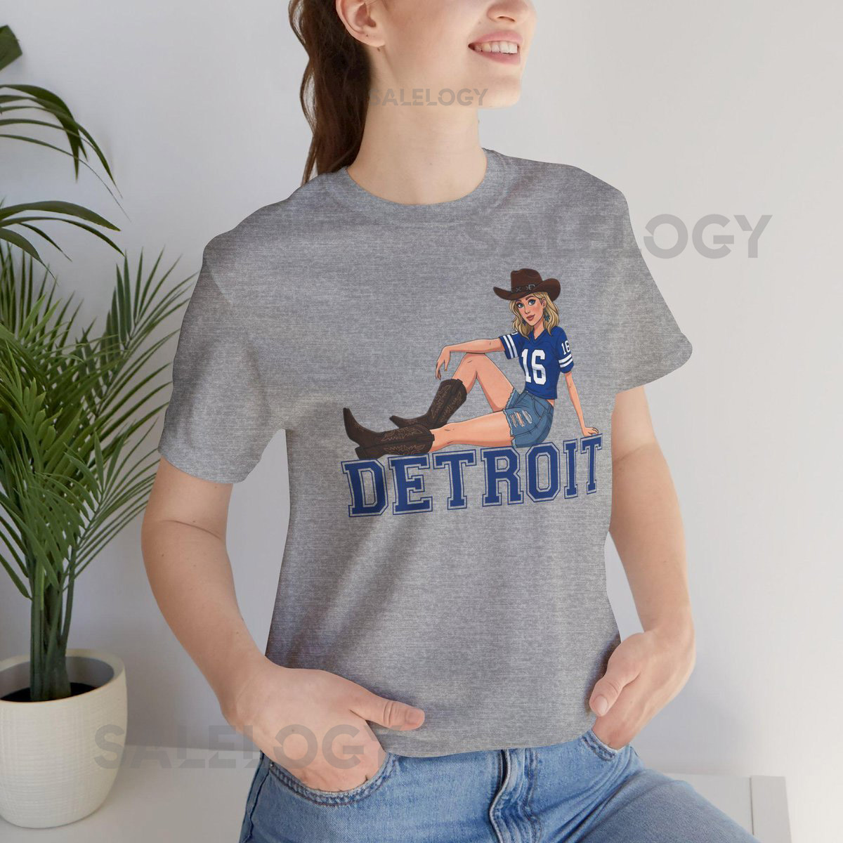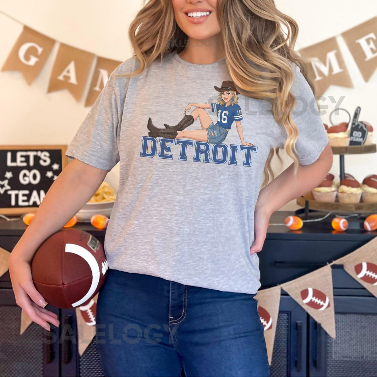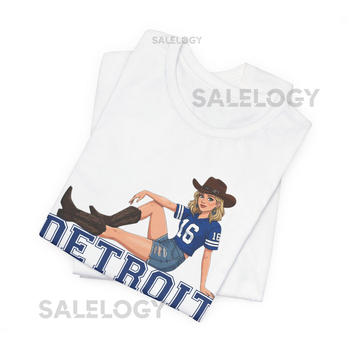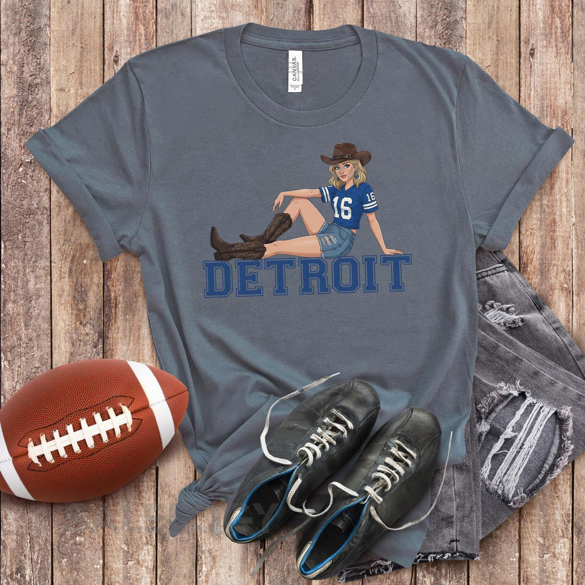 Detroit Lions Girl’s Football T-Shirt Cowgirl Style Michigan Tee_244