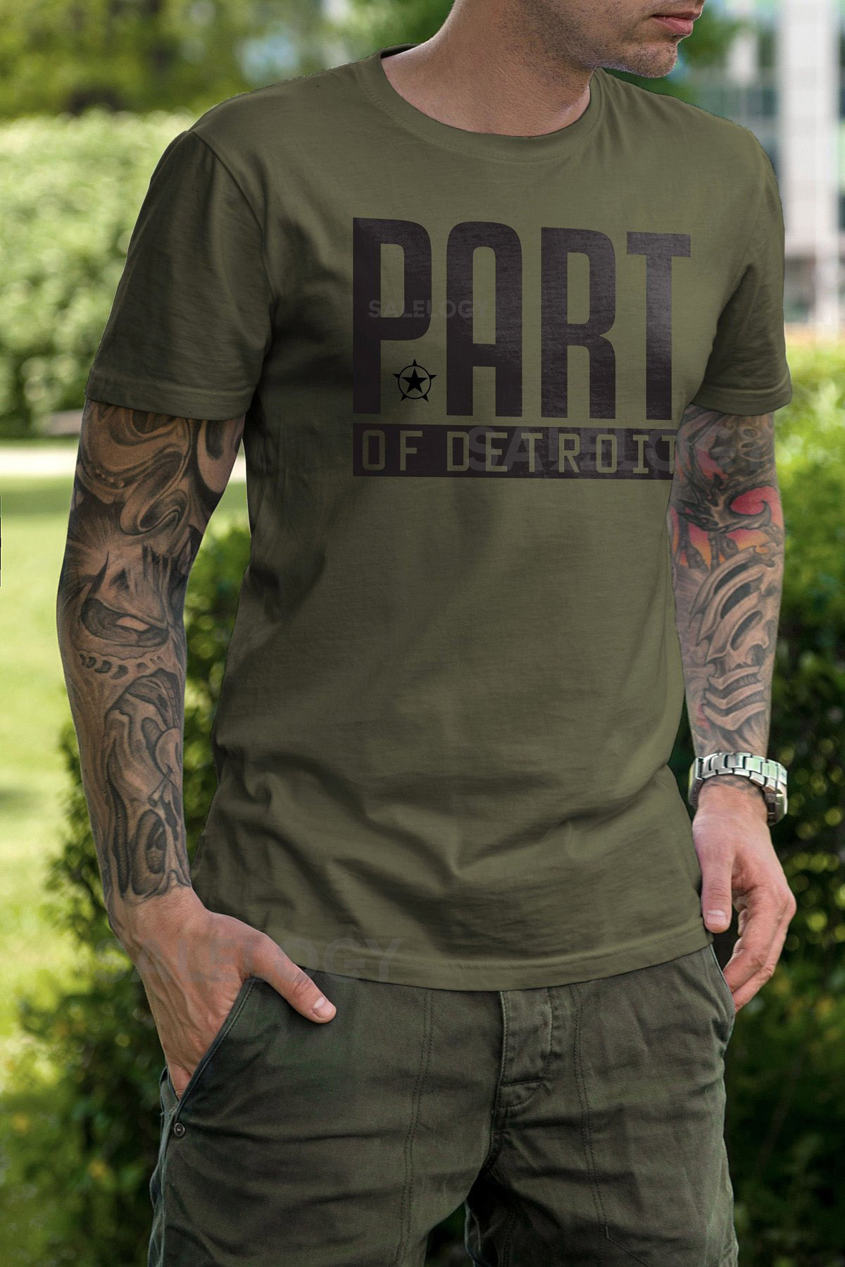 Detroit T-Shirt Military Green Motor City Pride_265