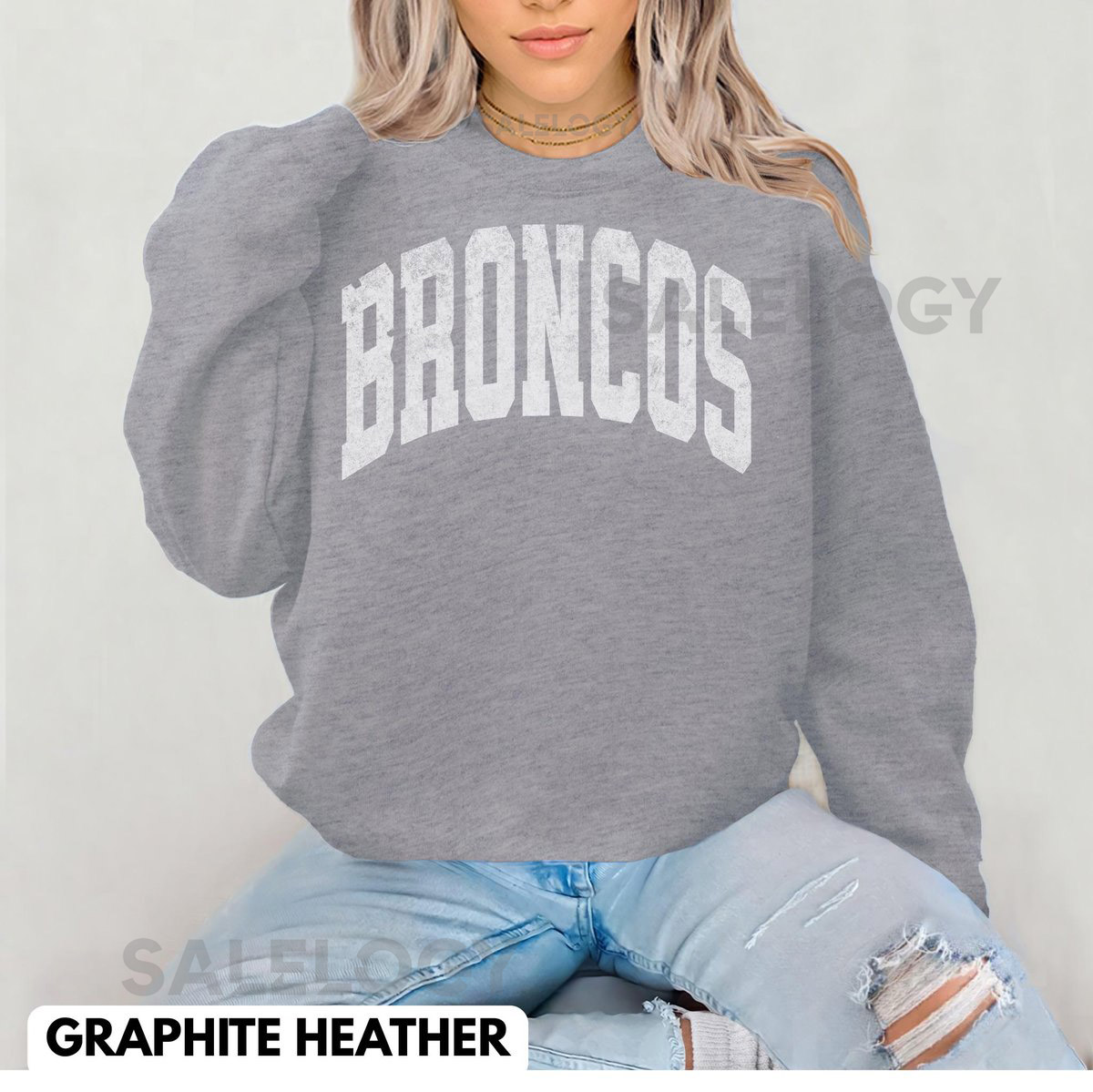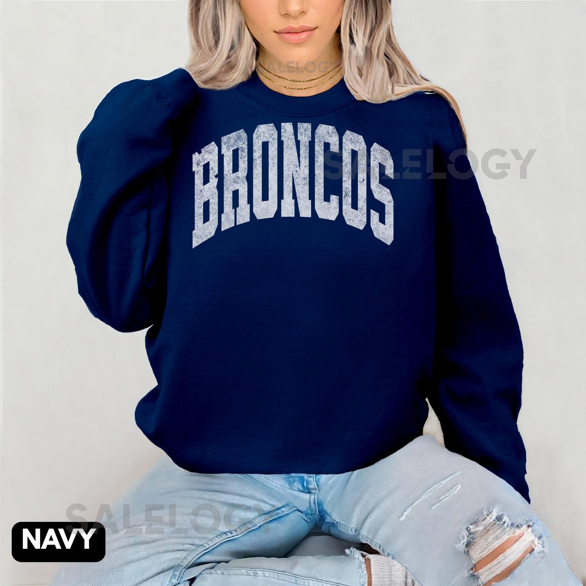 Distressed Broncos Sweatshirt Unisex Football Crewneck_368