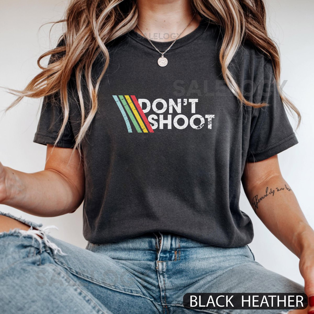 DON’T SHOOT Gaming Shirt Sarcastic Funny Retro Arcade Raiders Tee Video Game Emote Gamer Gift Distressed Vintage ARC Stripes_136