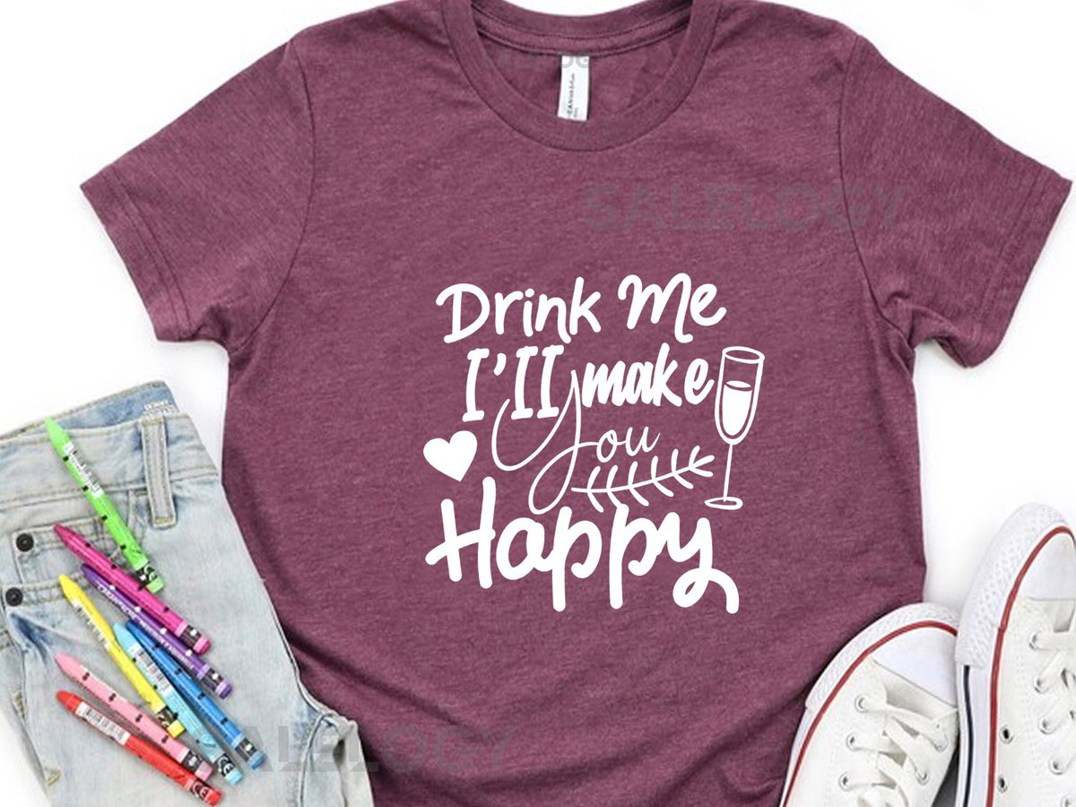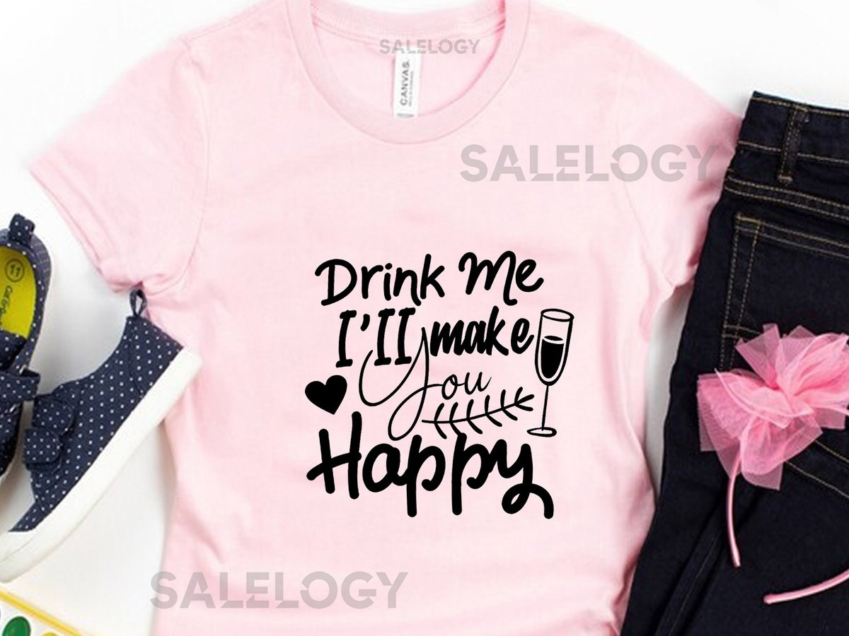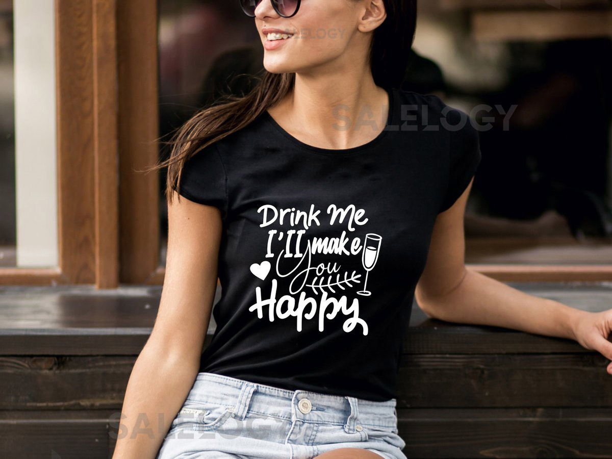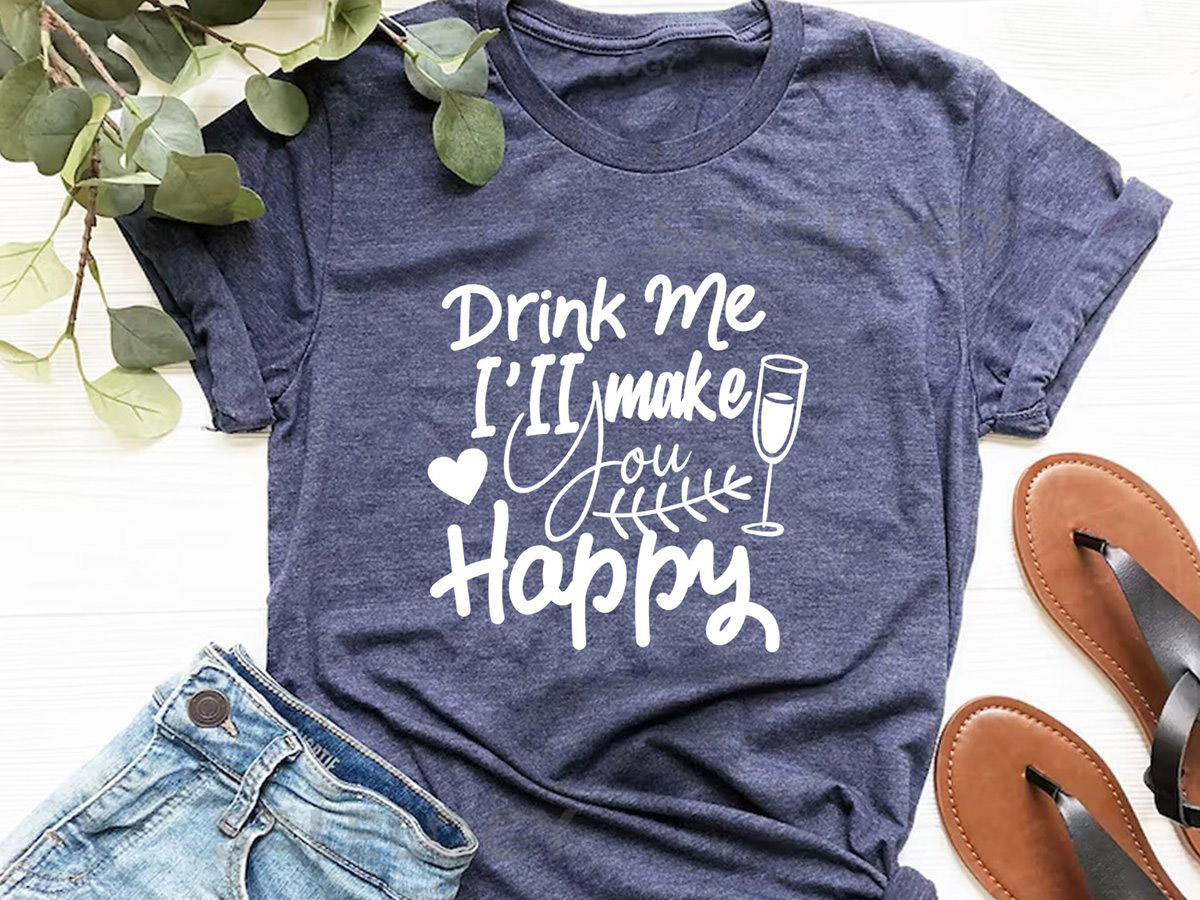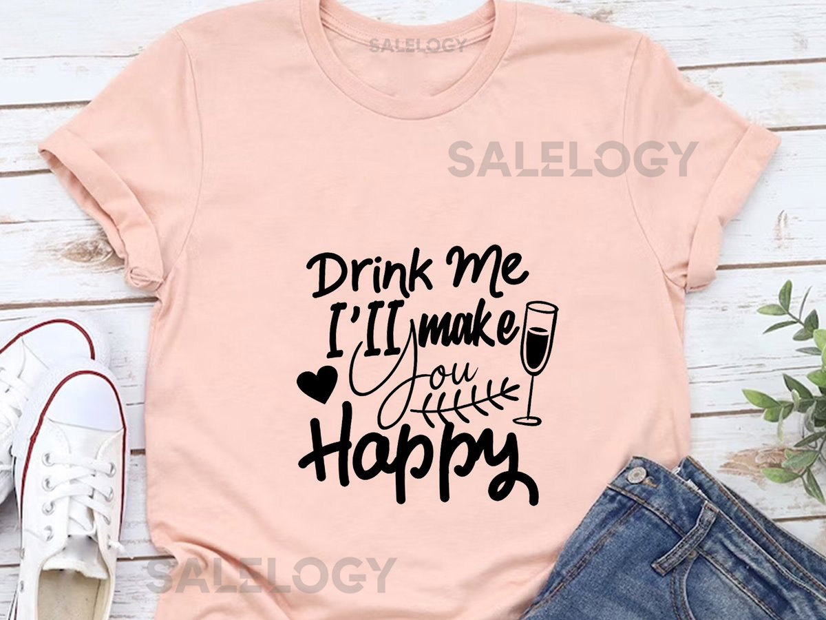 Drink Me I Will Make You Happy T-Shirt – Customized Graphic Unisex Tee – Happiness In A Glass – Sip Smile – Happy Sips – Wine Lover Tee_251