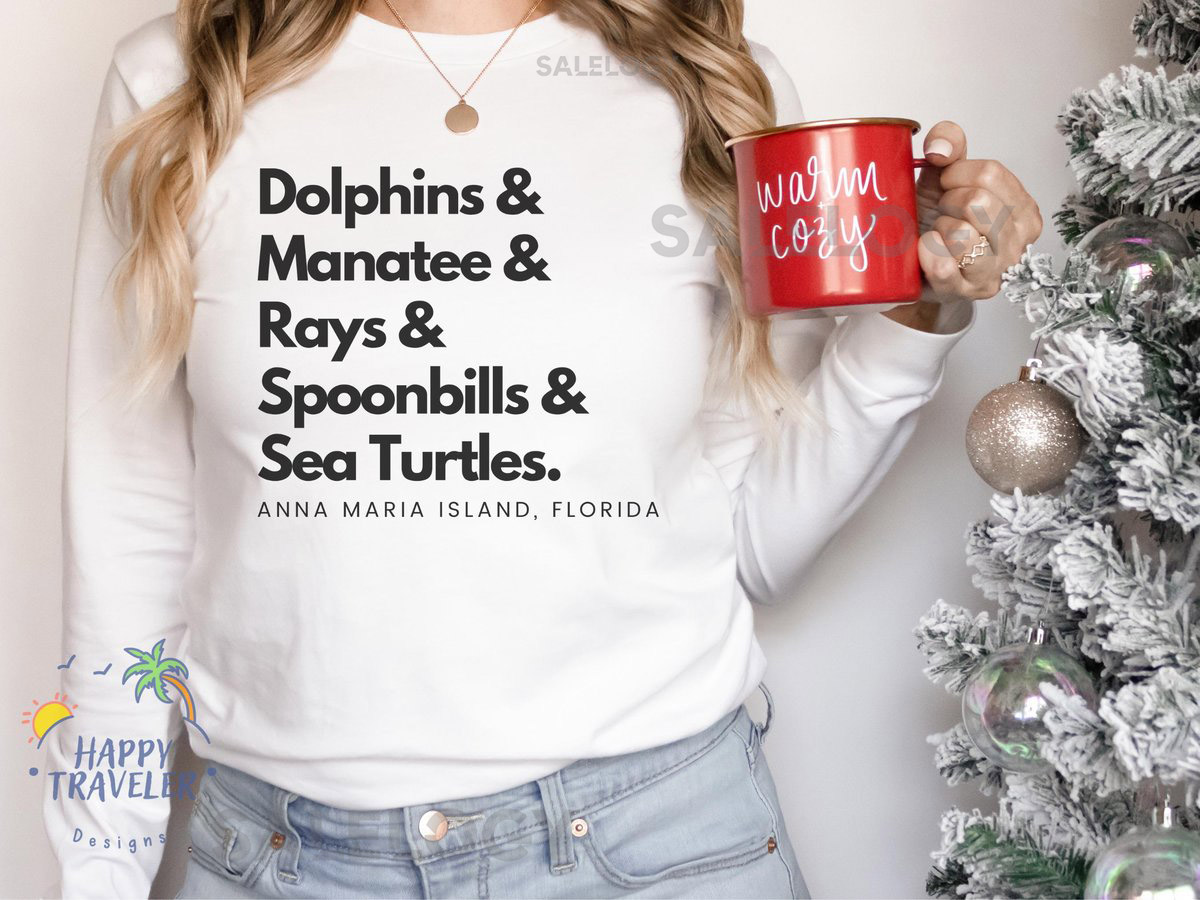 Florida Hurricane Aid Anna Maria Island Long Sleeve Tee – Soft Lightweight Bella Canvas Dolphins Manatee Rays Spoonbills Sea Turtles_447