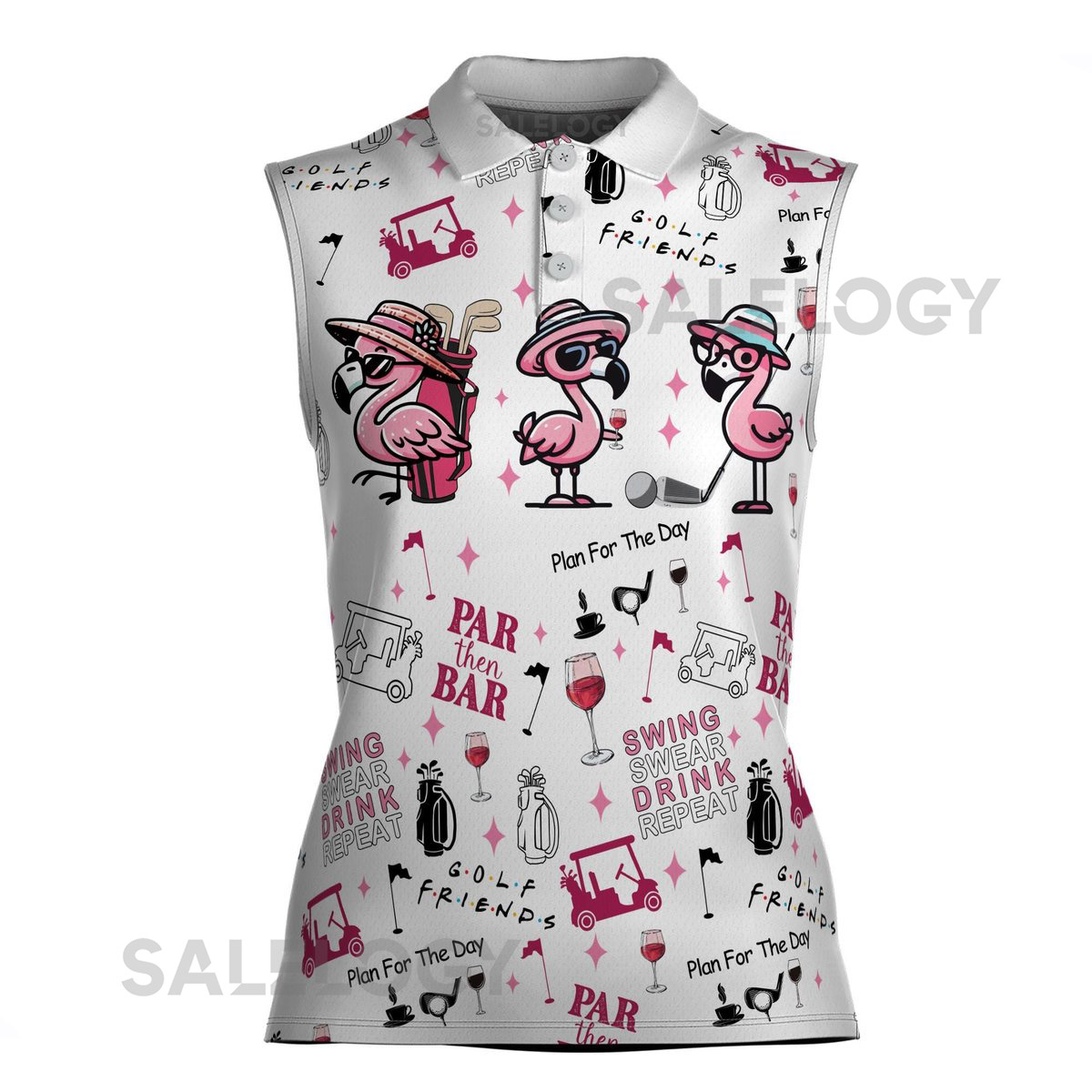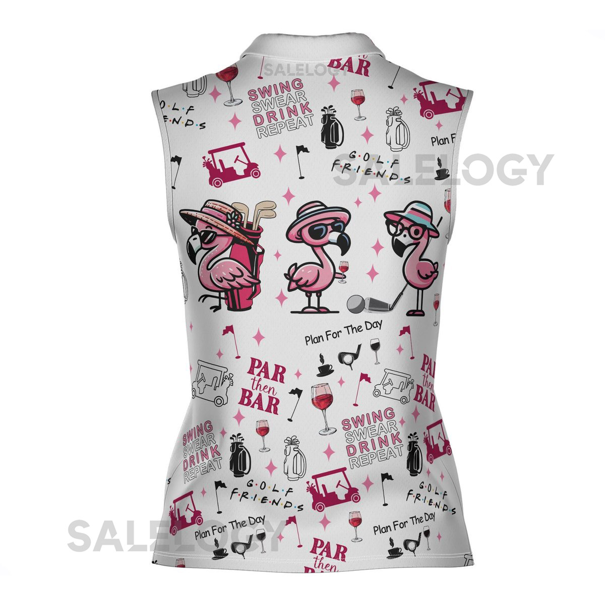 Funny Adorable Flamingo Par Then Bar Women Sleeveless Polo XS-4XL_482