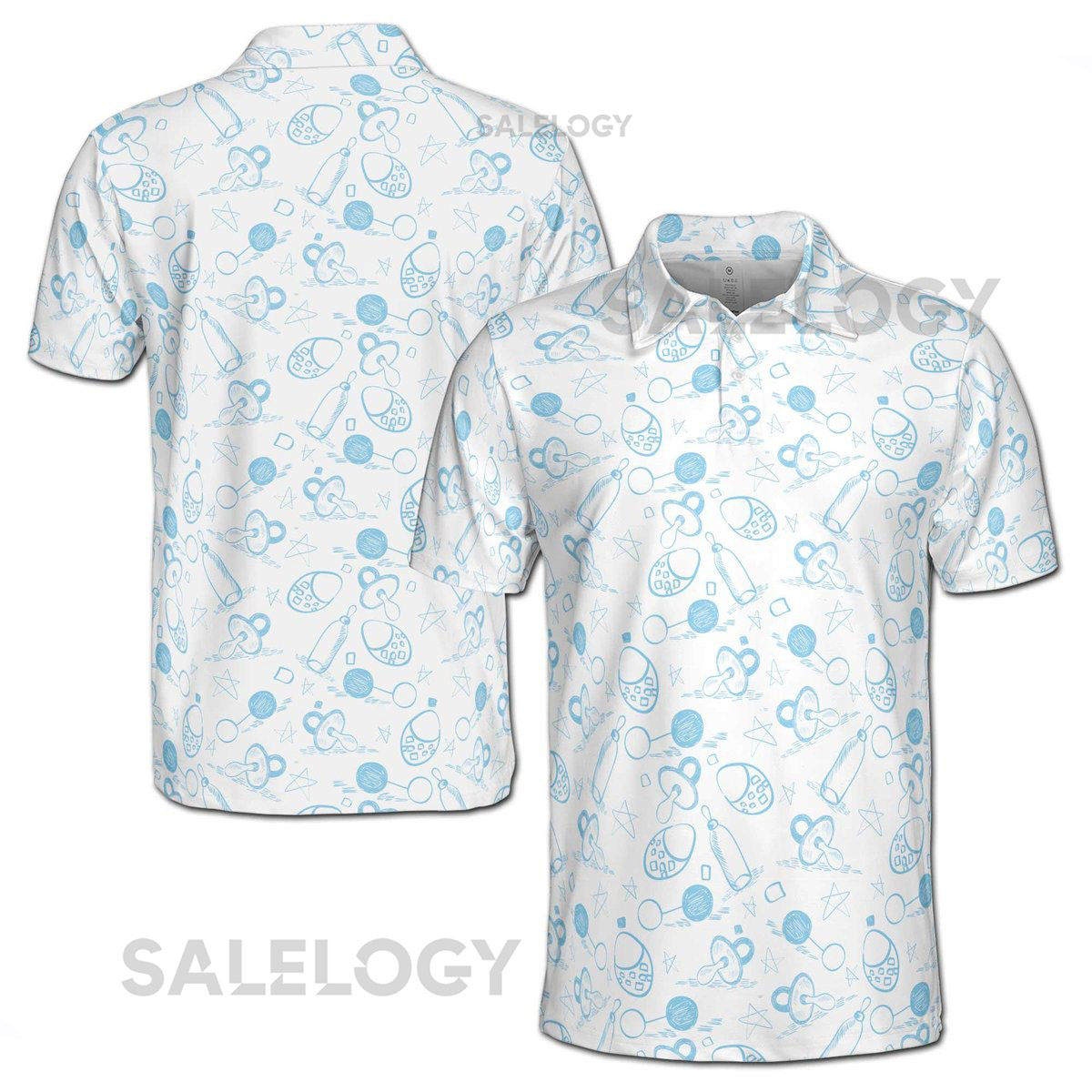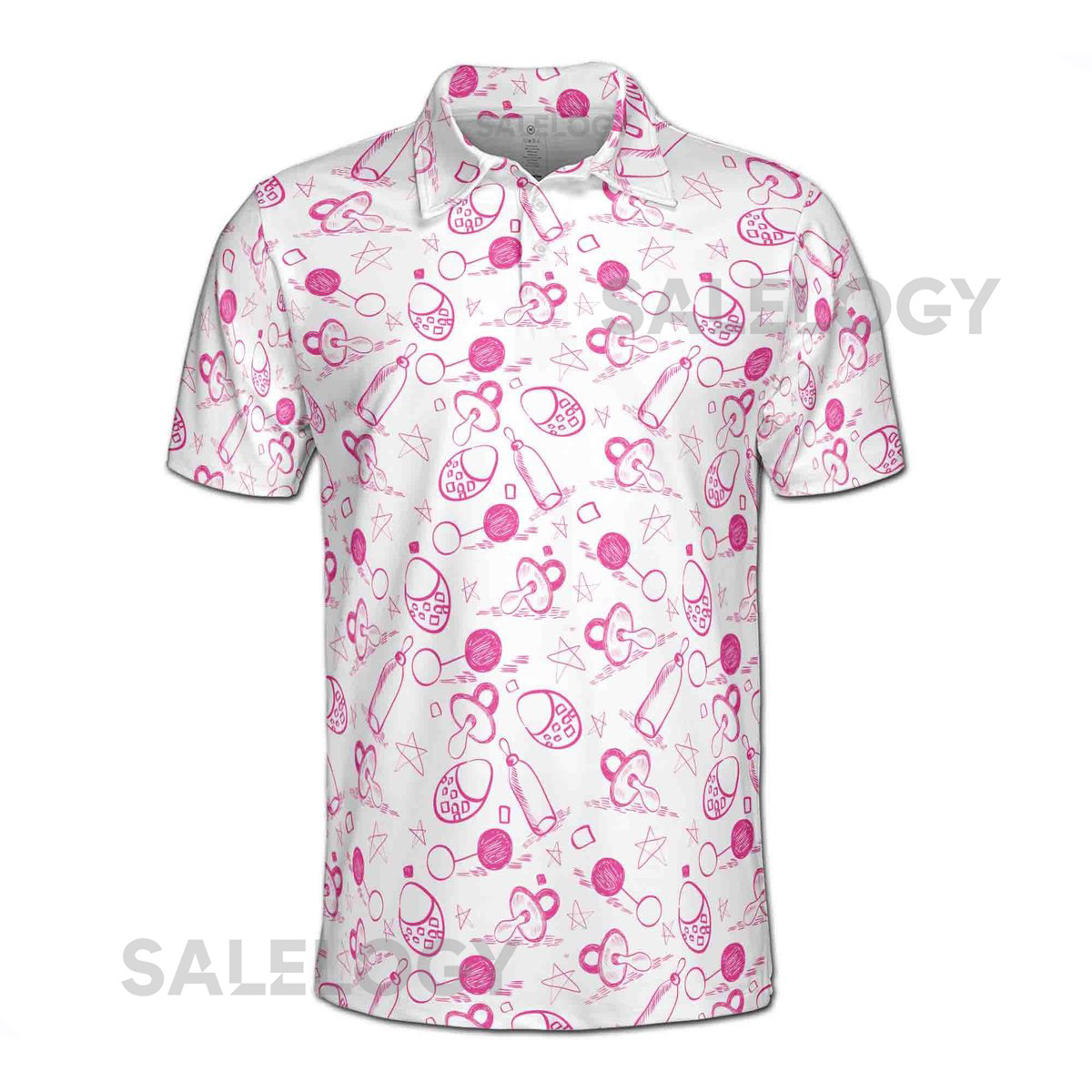 Funny Baby Pacifiers and Bottles Baby Reveal Day Men39s Polo Shirt S-5XL_485