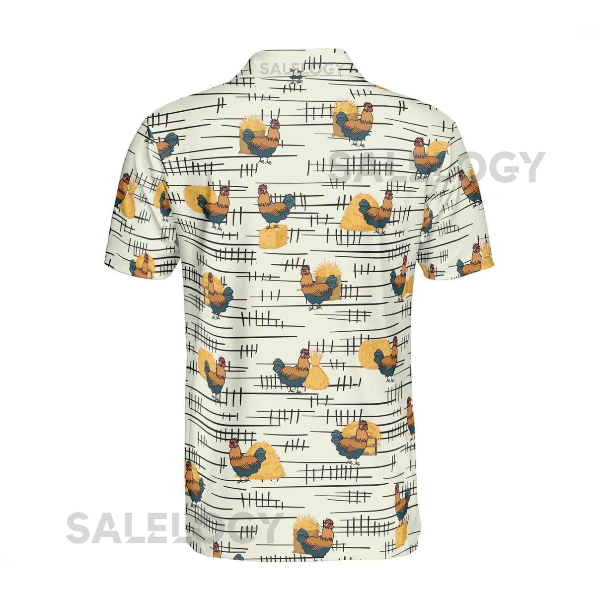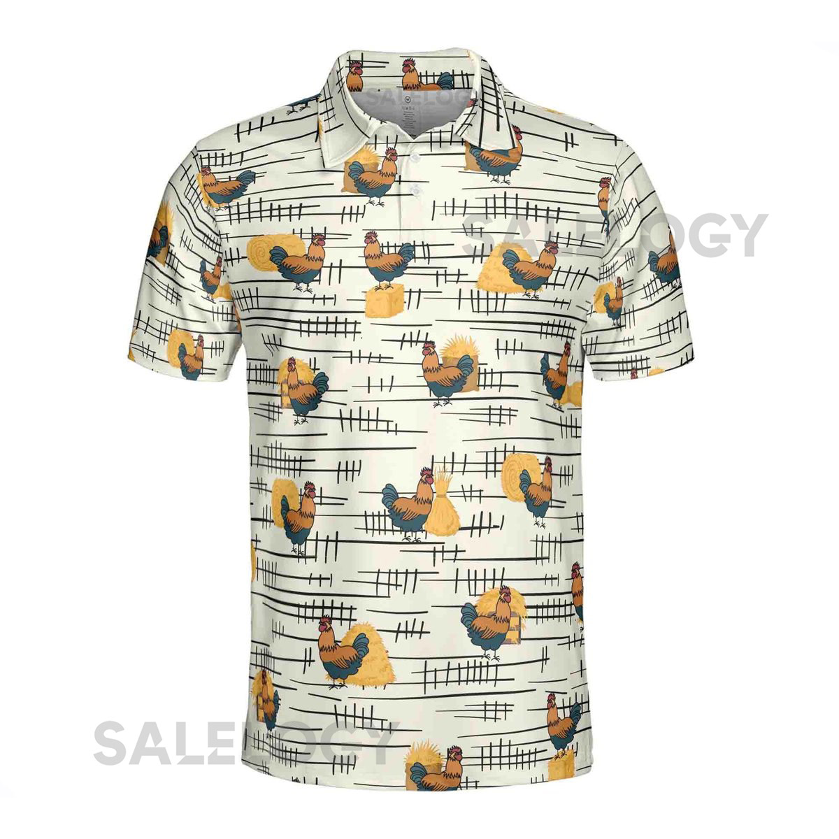 Funny Chicken Rooster Beside Haystacks Pattern Golf Men39s Polo Shirt S-5XL_493