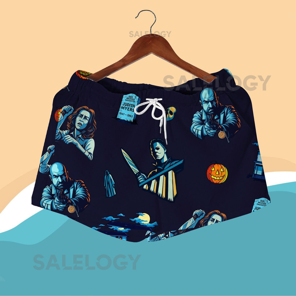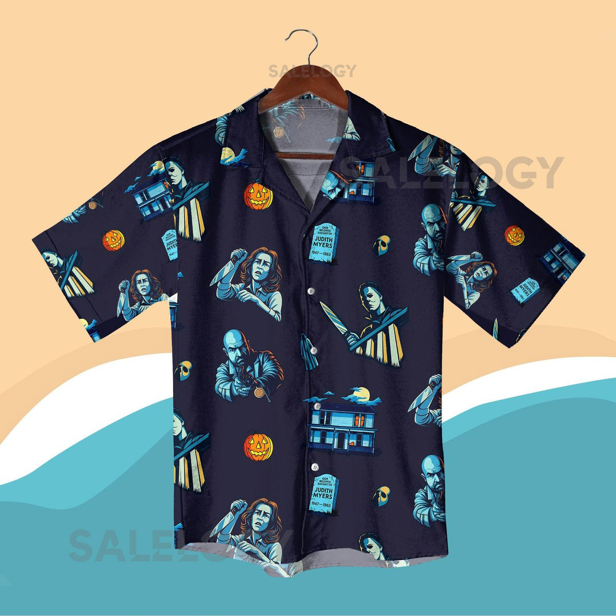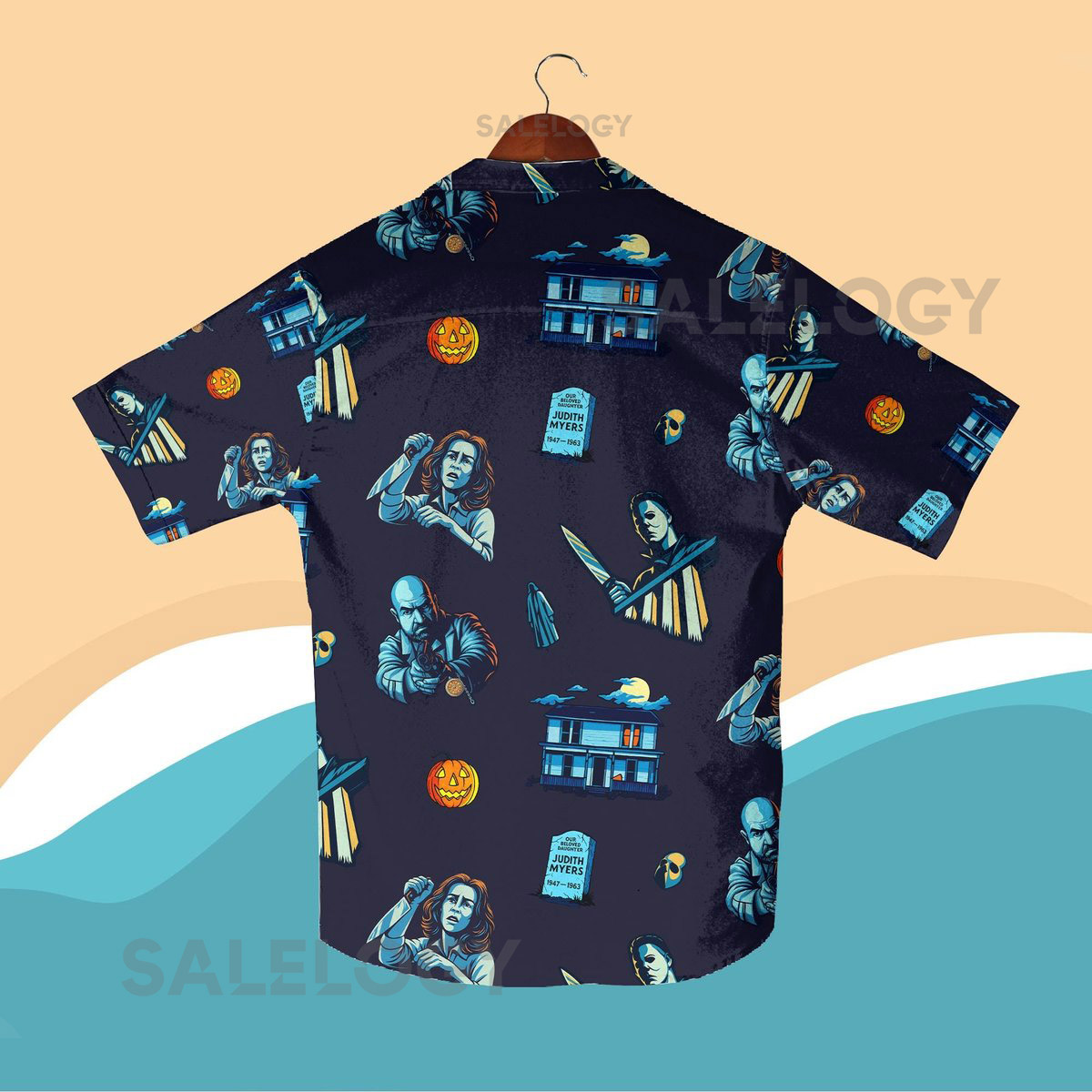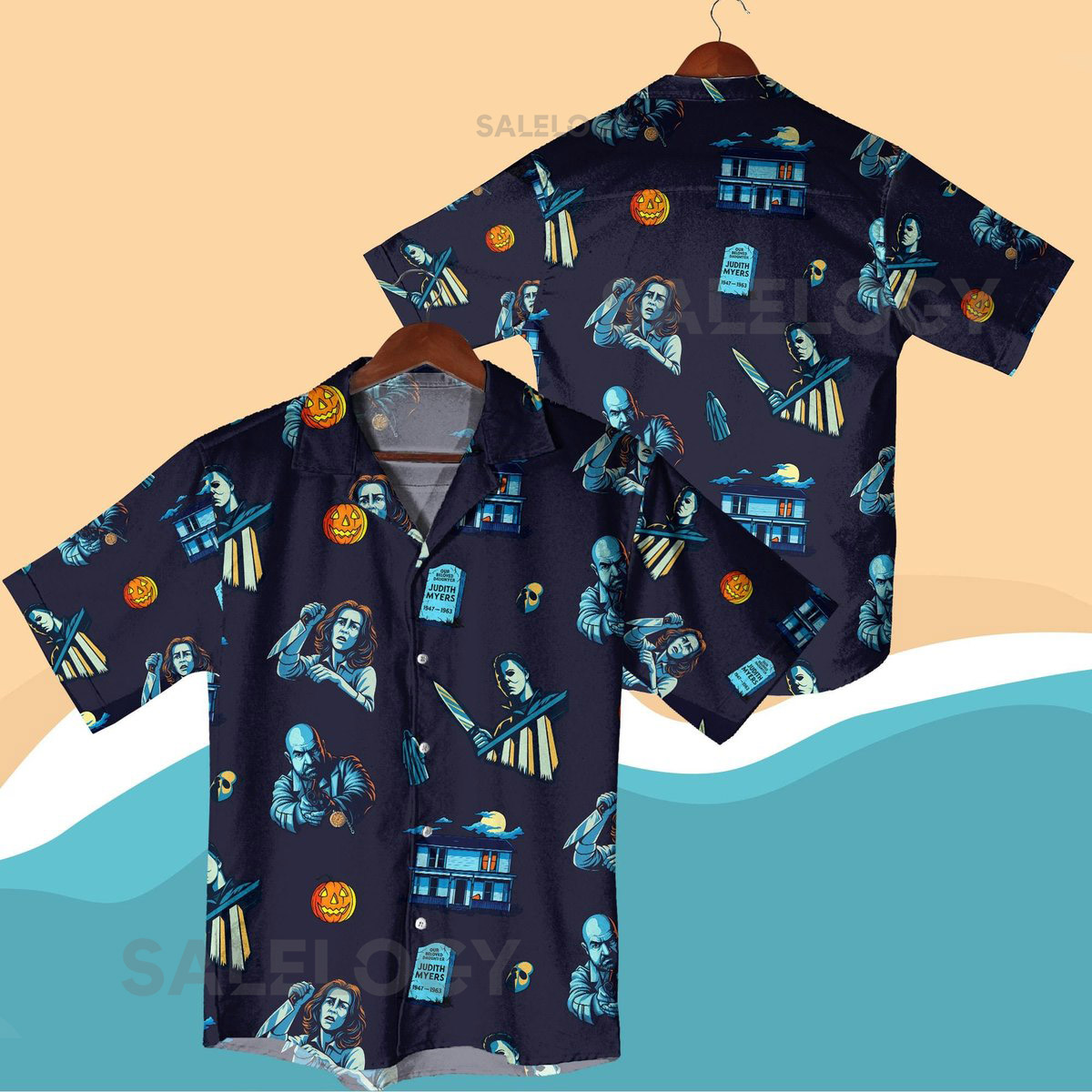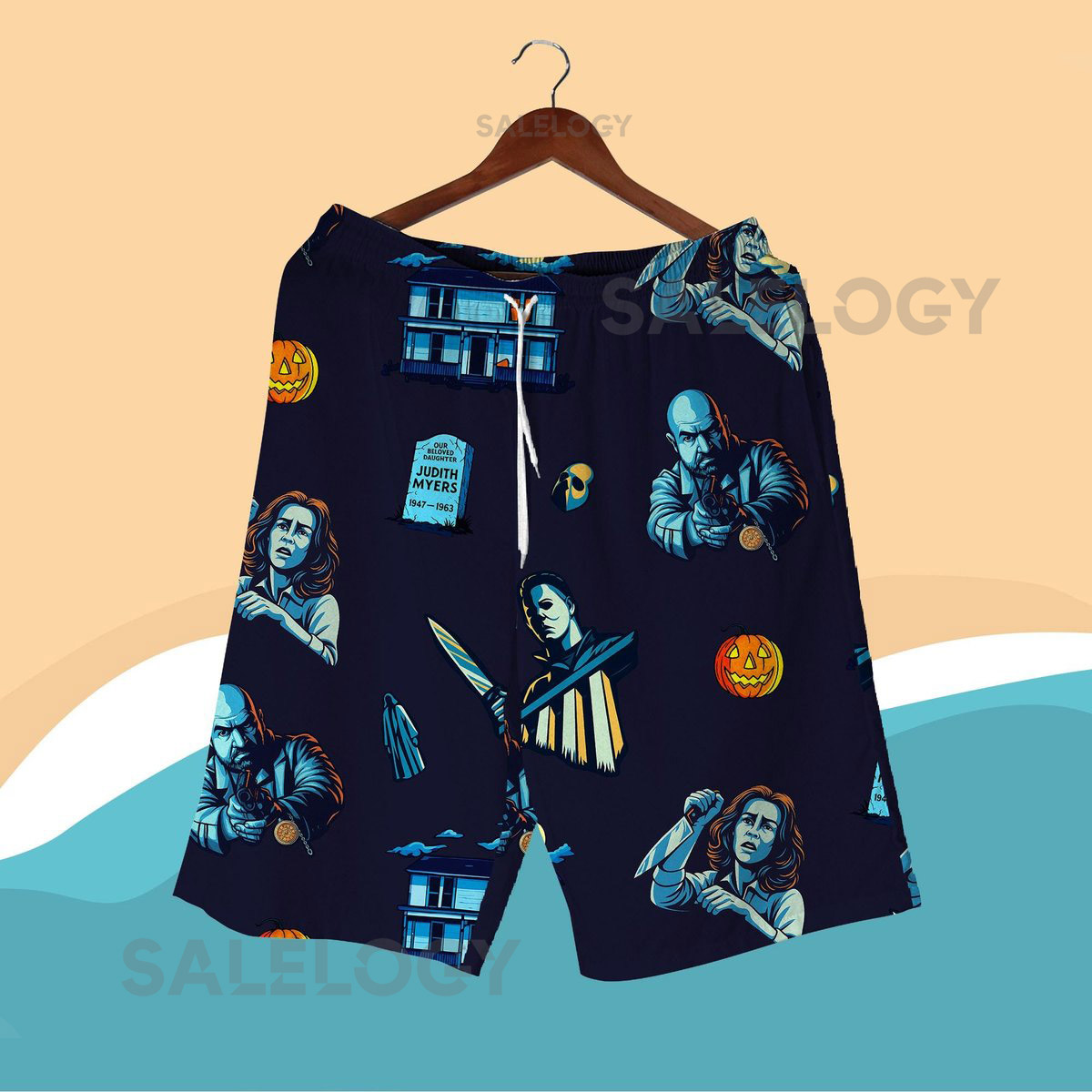 Halloween Horror Hawaiian Shirt Shorts – Spooky Season Haunted House Retro Scary Movie Aloha Vacation Outfit – Unisex Halloween Apparel_98