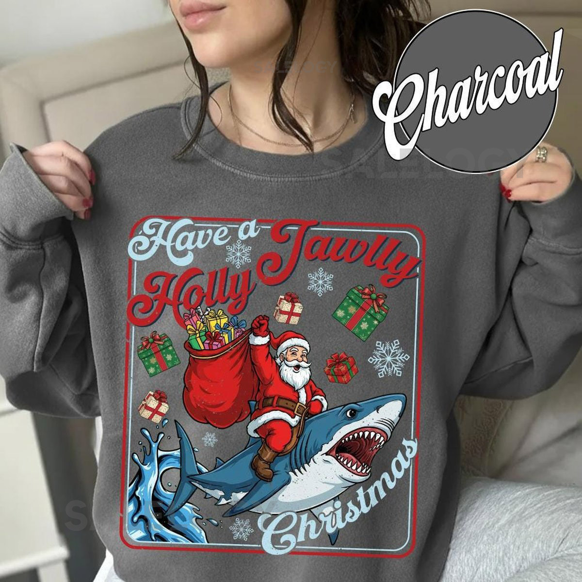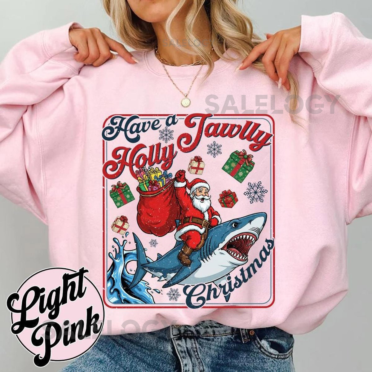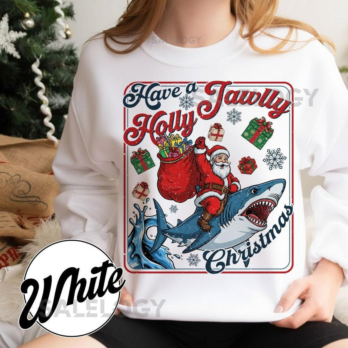 Have A Holly Jawlly Christmas Sweatshirt Funny Shark Kids Shirt Festive Holiday Apparel For Shark Lovers 251125DN10_117