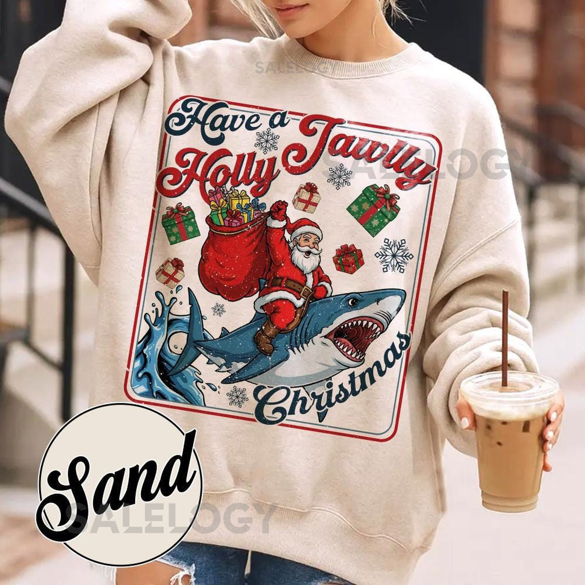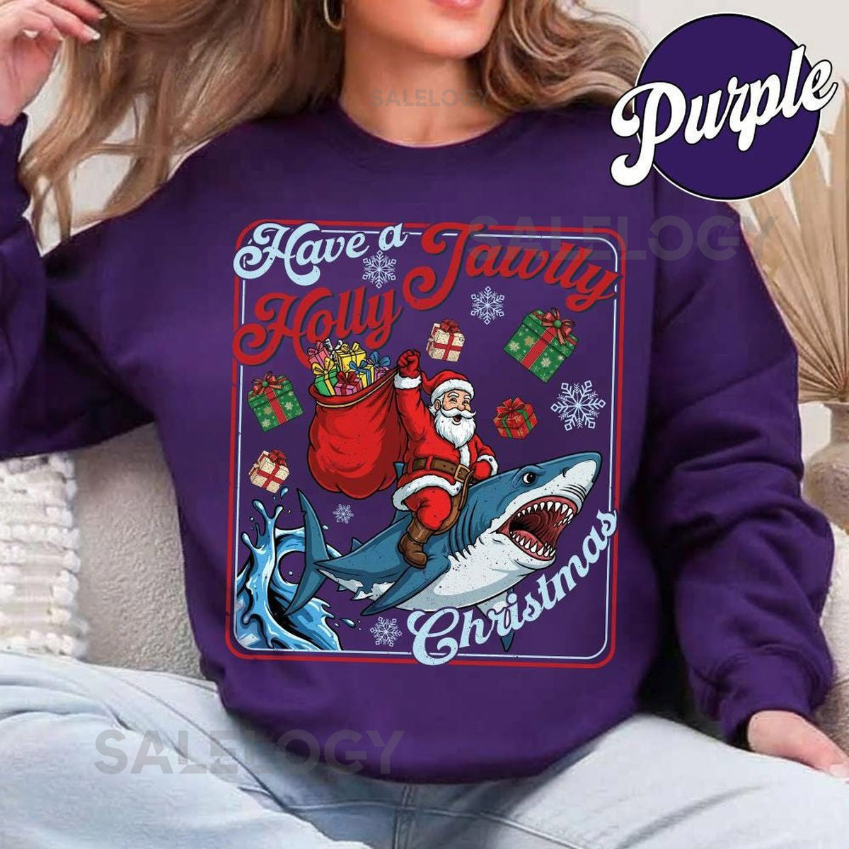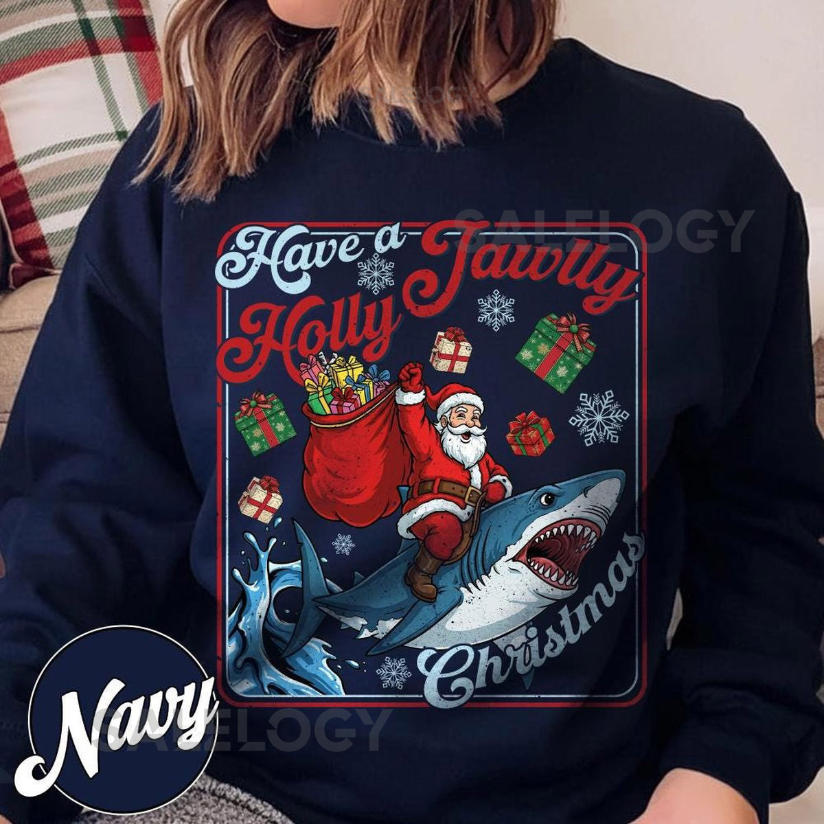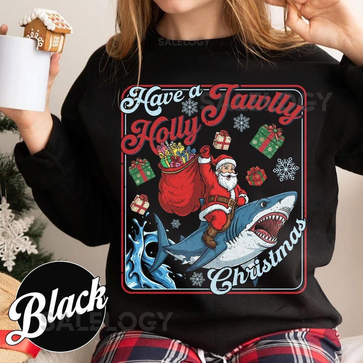 Have A Holly Jawlly Christmas Sweatshirt Funny Shark Kids Shirt Festive Holiday Apparel For Shark Lovers 251125DN10_117