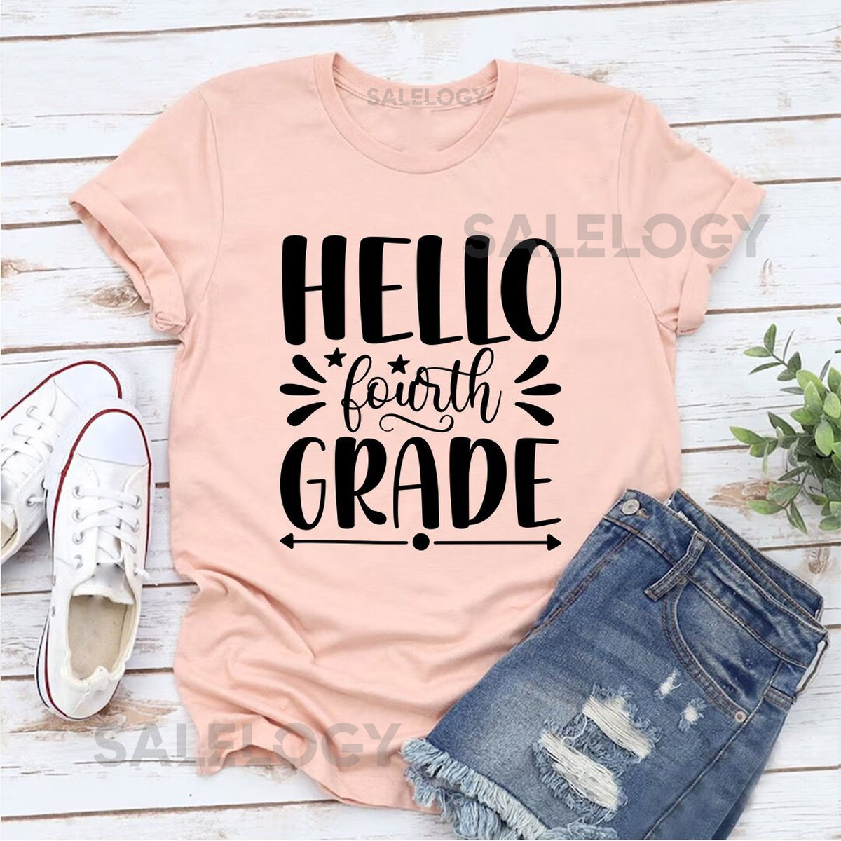 Hello Fourth Grade T-Shirt -Customized Graphic Unisex Tee -School Life-Milestone Tee -Educational Journey -Young Scholar-School Success_448